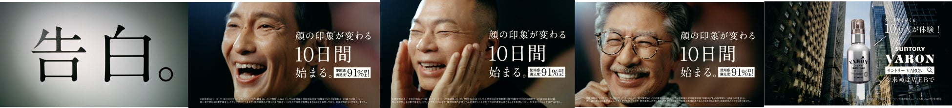 「VARON」を10日間使ったさまざまな年代の男性たちに使用した感想を語っていただきました。「今さらスキンケア?」という気恥ずかしさやとまどい、「もっと早くやっておけばよかった」という後悔、その向こうに見え隠れする「まだ変われる」という希望。 そんなリアリティこそが背中を押す力があると、特大のポートレートの前で、恥じらいながらも思う存分「告白」していただきました。そのような言葉が、見ているお一人おひとりの自分らしい魅力に改めて気づいていただけると思い制作しました。ミドル・シニア層がスキンケアする時代の始まりをイメージしてもらうために3,2,1と始まる象徴的なTHE TV SERIES THUNDERBIRDSの楽曲「サンダーバード」を添えて、これから人生の後半戦を生きる男性たちへの応援歌となりました。