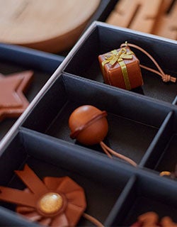 お菓子のアソートのように、ボックスに並ぶツリーとオーナメント