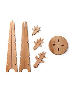 北海道産ハンノキ。ツリーを製造するチエモクは、持続可能な木材の手配を目的に、北海道下川町にて植林活動にも取り組んでいます。マツなどの商業的な回転が活発な樹種に比べ、ハンノキは建材などに不向きな木。小物にするには問題のない性質を活かし、今回のツリーでは、丸みのある仕上げや明るい木目、ハンノキらしい特性を感じる形に仕上げています。