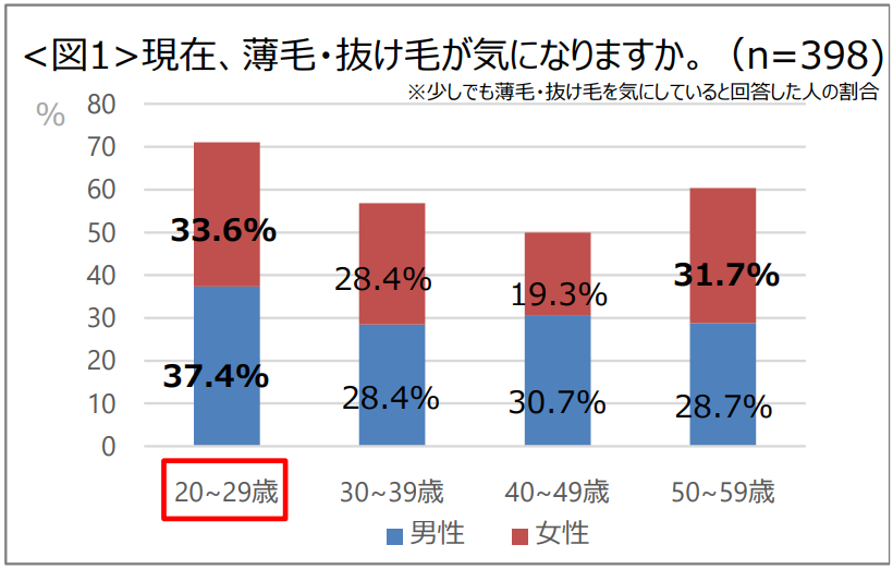 薄毛・抜け毛が気になる「20代男女」が最多 ガムを噛むことにより「頭皮血流」が増加することが明らかに。