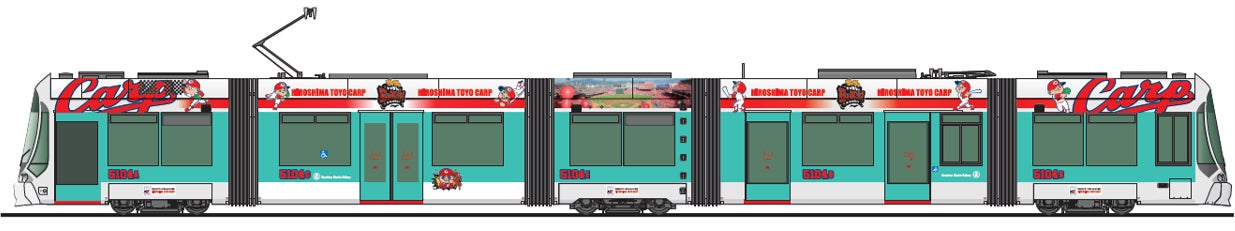 広島が誇る“広島東洋カープ”のイメージをダイナミックに描き、路面電車の動きとともに、キャラクターが駆け抜けていくように見せて、より躍動感が増す工夫を凝らしました。