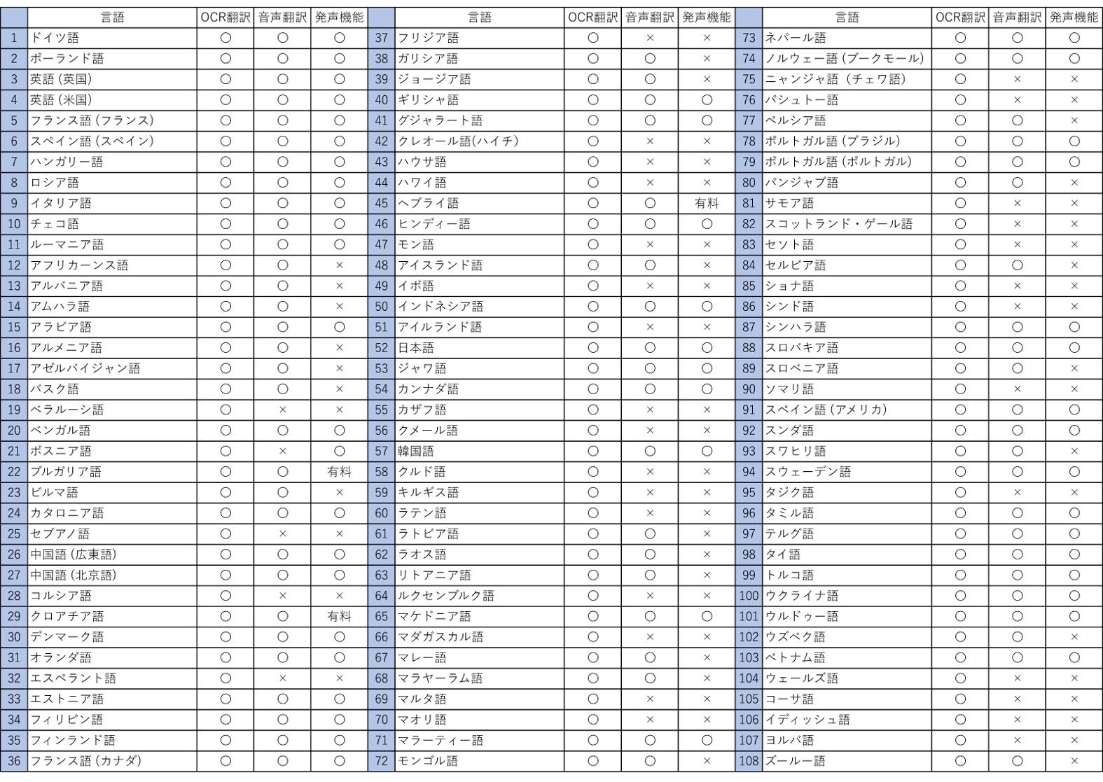 - 世界中の9割以上の人々とコミュニケーションを可能にする100以上の言語対応