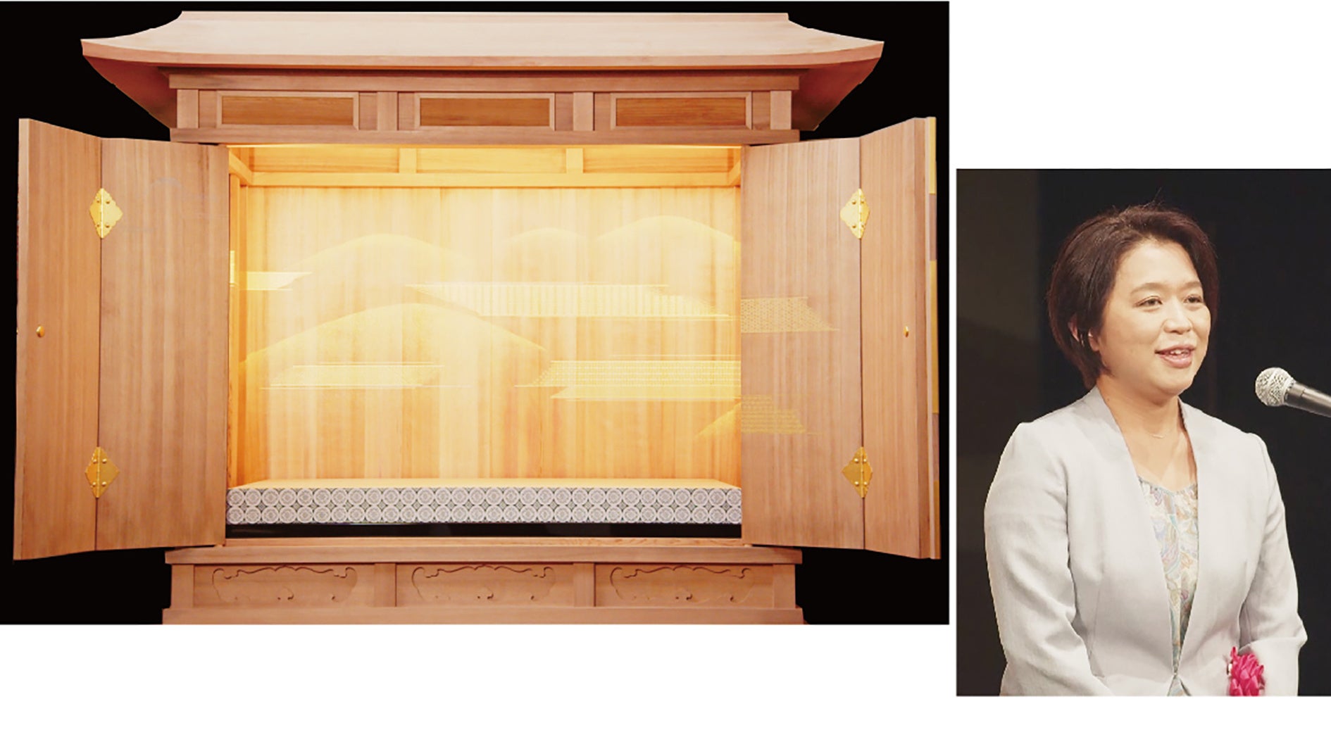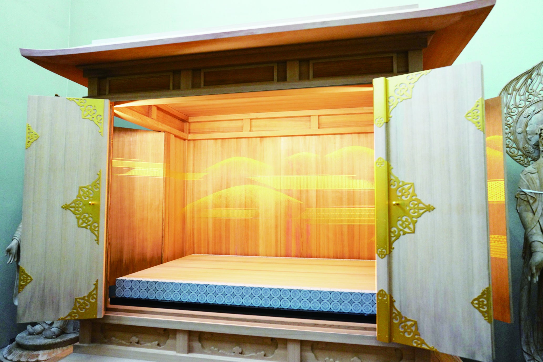 - 像が納まる厨子(ずし)は截金師 江里朋子氏が担当