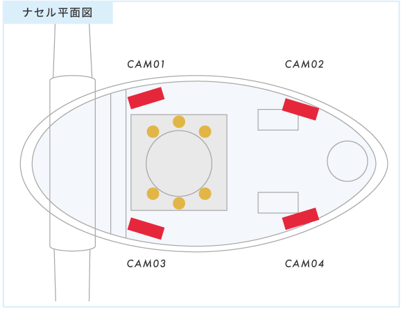 風車のナセル内部にカメラを設置して定期的に画像を取得することで、常にナセル内部を監視することが可能です。取得した画像はAIを用いて解析し、人間の目では発見が難しいわずかな変化(異常)を察知することができ、問題の早期発見につながります。