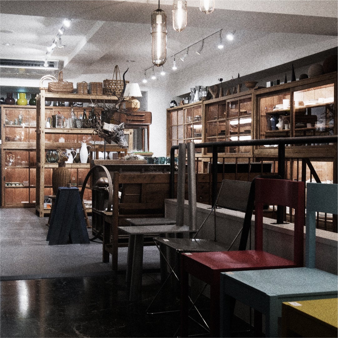 椅子を中心とした家具から、テーブルウェア、インテリア雑貨、その他オブジェやオーナメント、天板、照明など幅広く取り揃えています。
