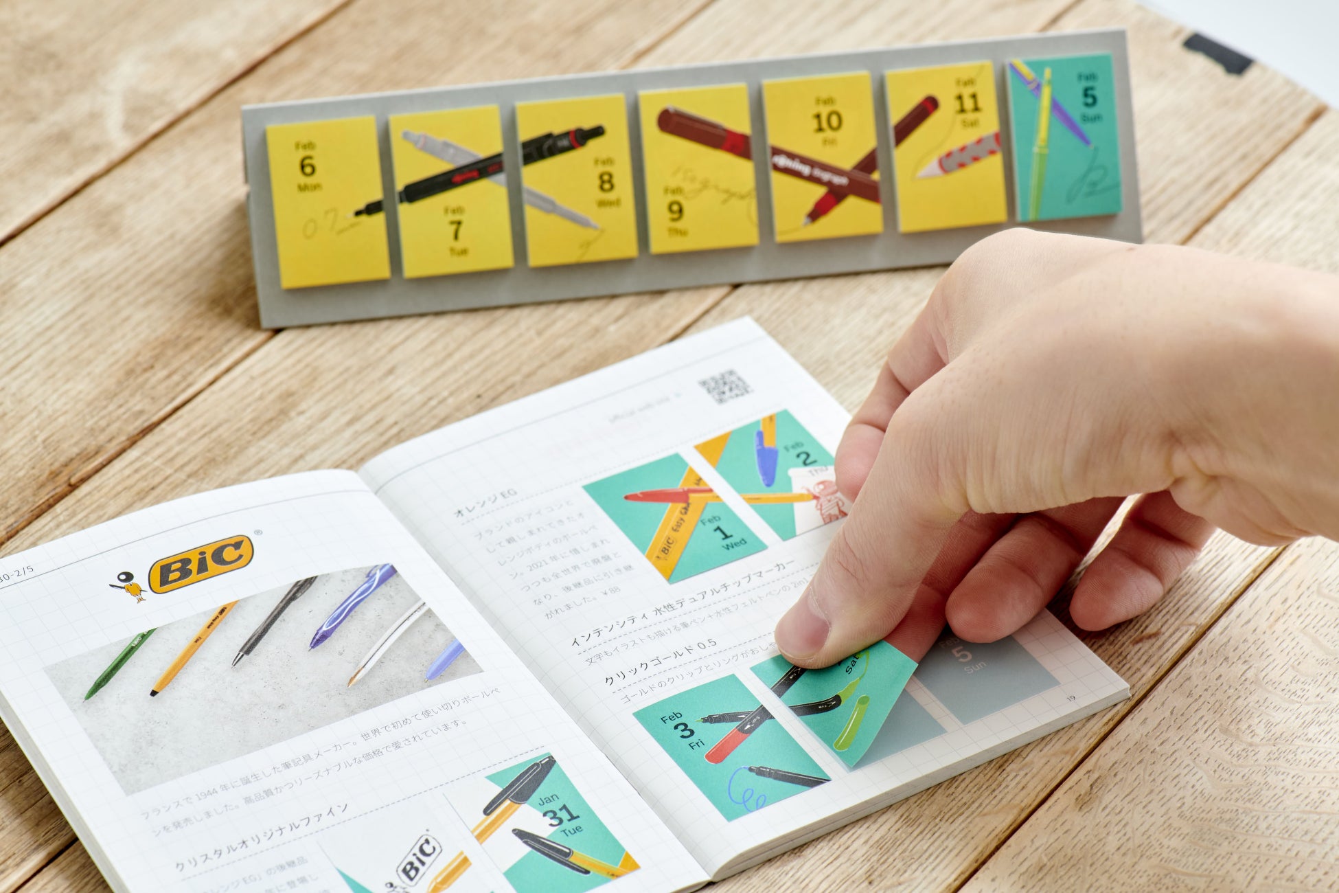付属の特製ブックレットには登場するメーカーや文房具についての豆知識が掲載されています。1年間で文房具図鑑を完成させることができます。