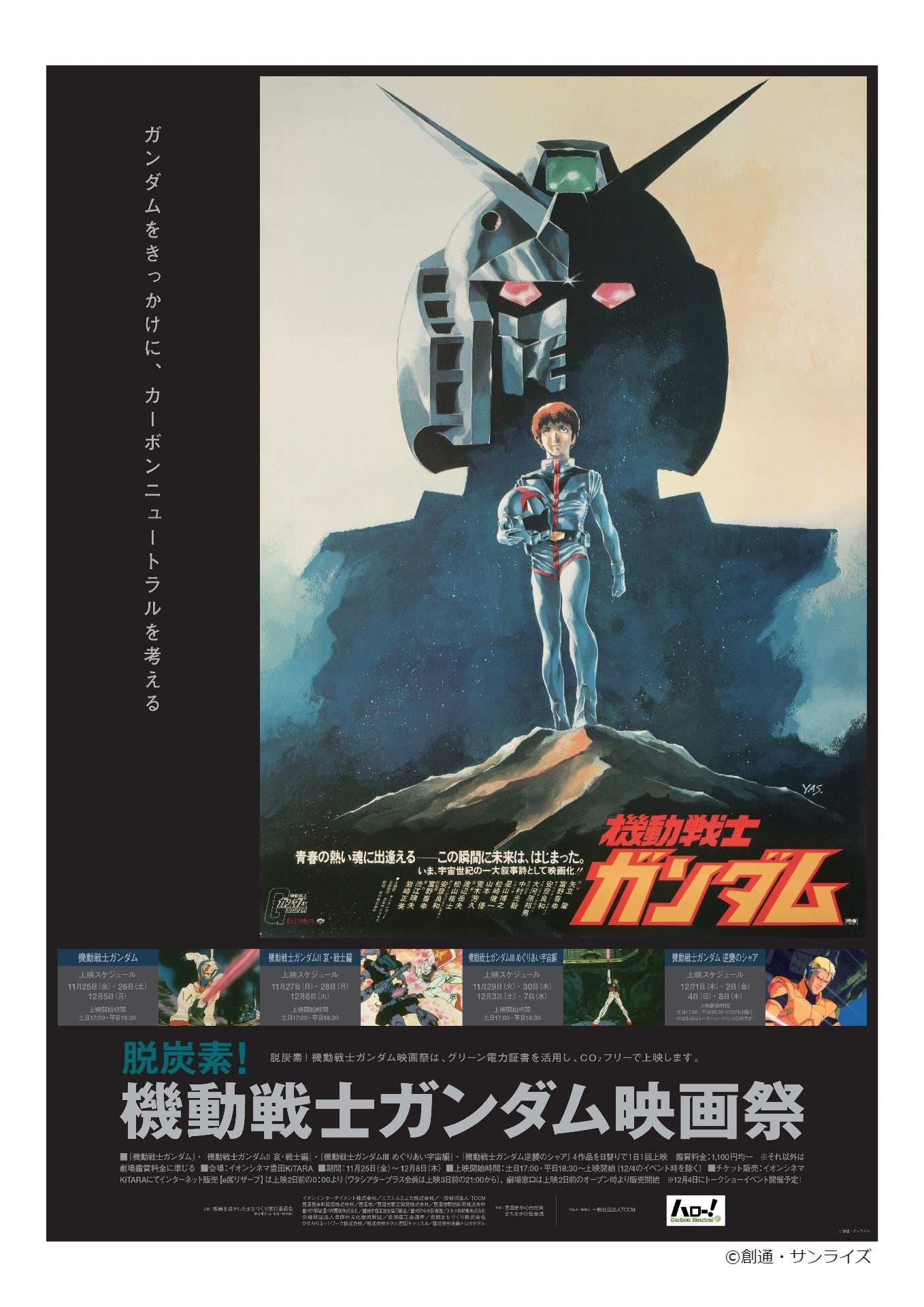 映画を生かしたまちづくり実行委員会の協力のもと、CO₂フリー(グリーン電力証書を活用したCO₂排出が実質ゼロ)のガンダム映画の上映会や、上映館内での市のカーボンニュートラルの取組紹介、トークショーなどを実施します。