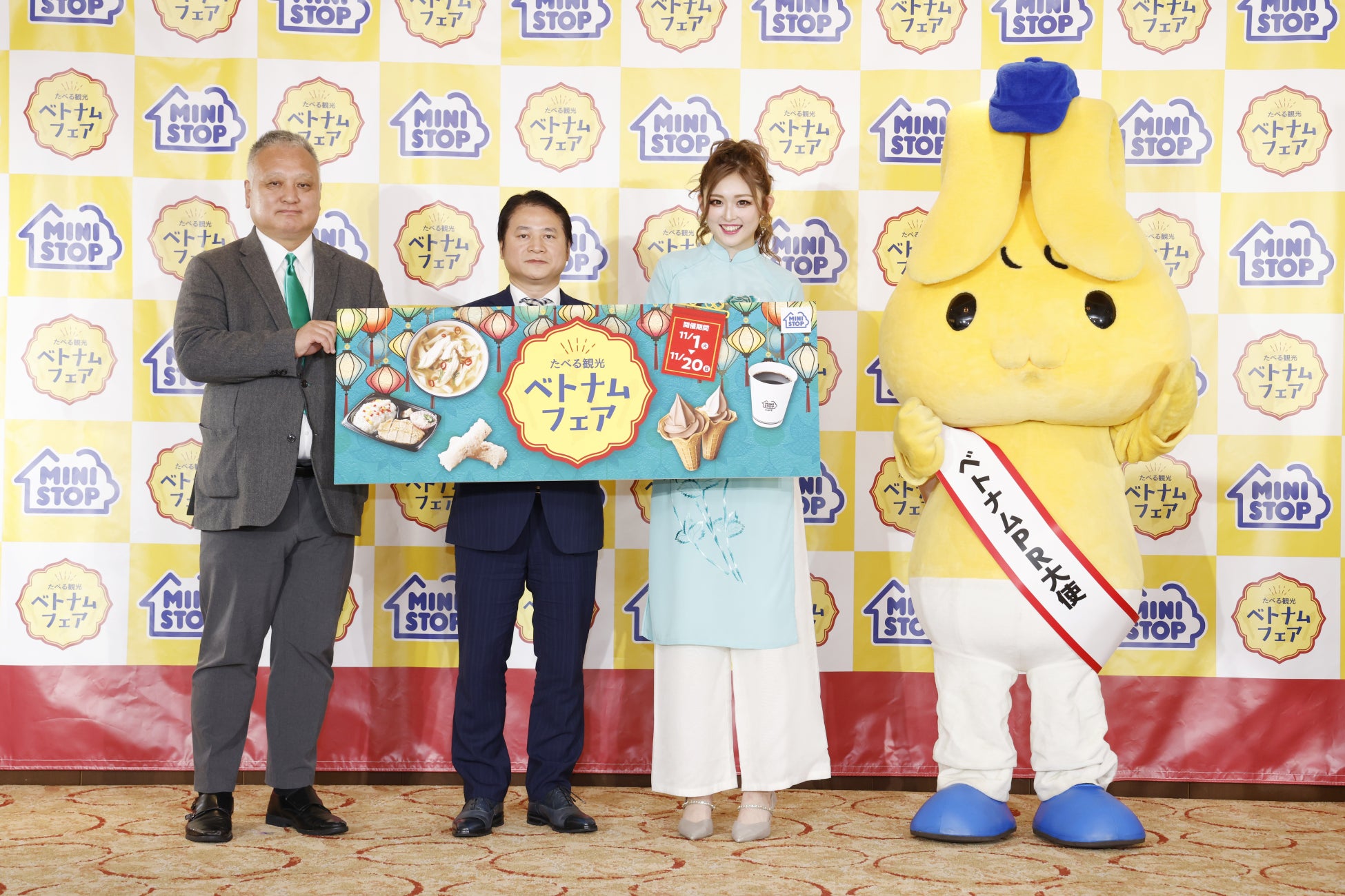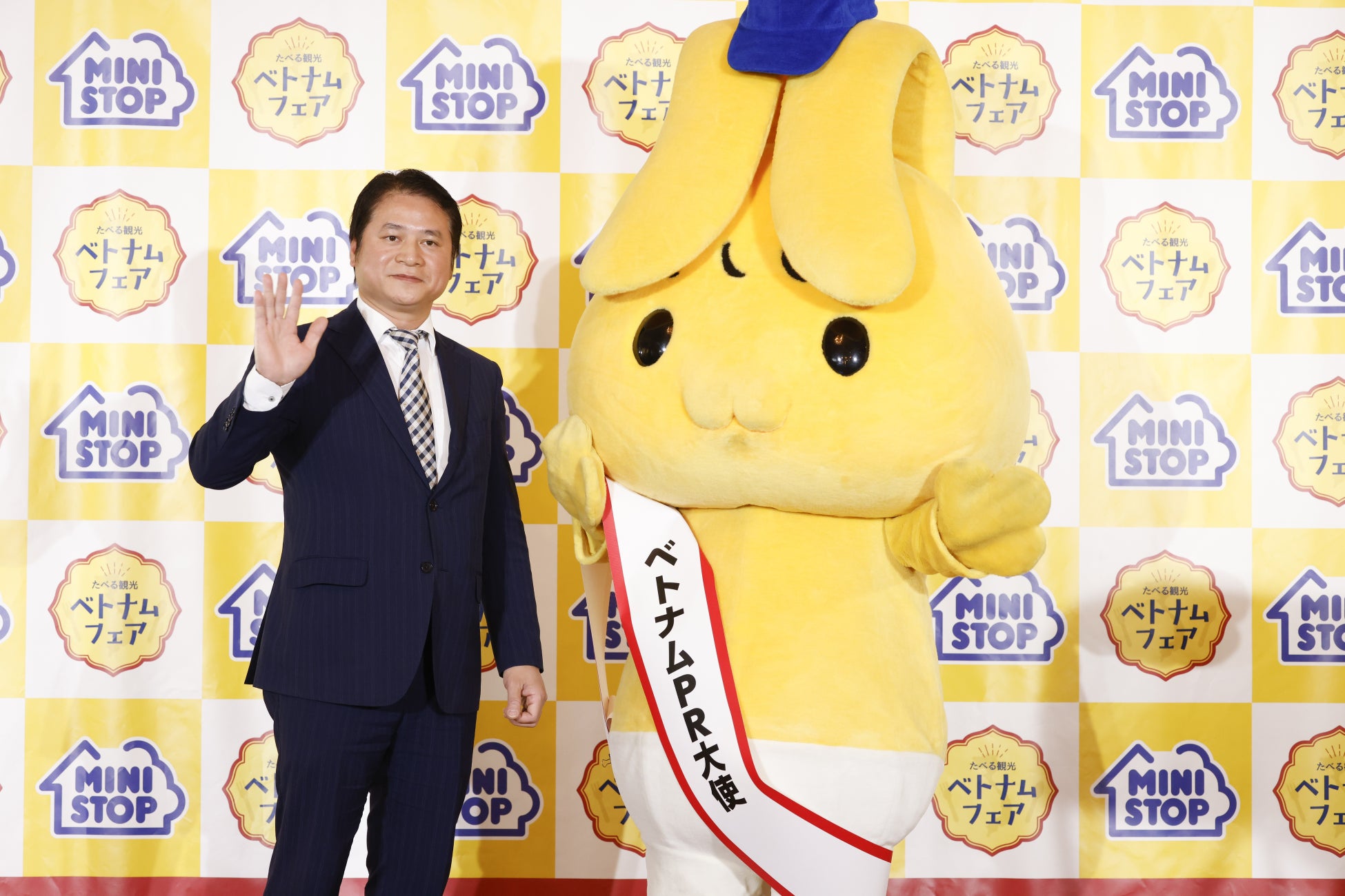 イベント内で実施された「ベトナムPR大使」任命式では、ミニストップを代表して、ミニストップ公式キャラクターのミミップが登場。駐日ベトナム大使館 商務参事官 タ・ドク・ミン氏より、たすきの授与が行われ、ミミップが「ベトナムPR大使」として任命されました。