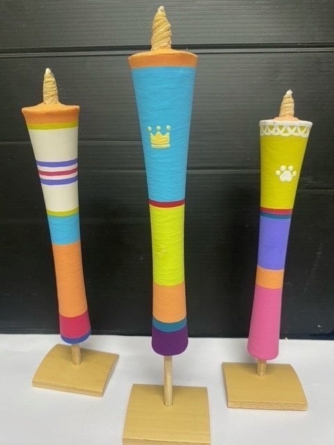 ・今回の展覧会のために、特別に京都の工芸美術作家と現代アーティストのコラボレーションが実現し、制作された、茶碗と棗(なつめ)と京蝋燭(ローソク)と扇子作品の展示。(茶碗): 洸春窯:高島慎一+平川恒太、船井美佐 真葛窯:宮川真一+山本太郎