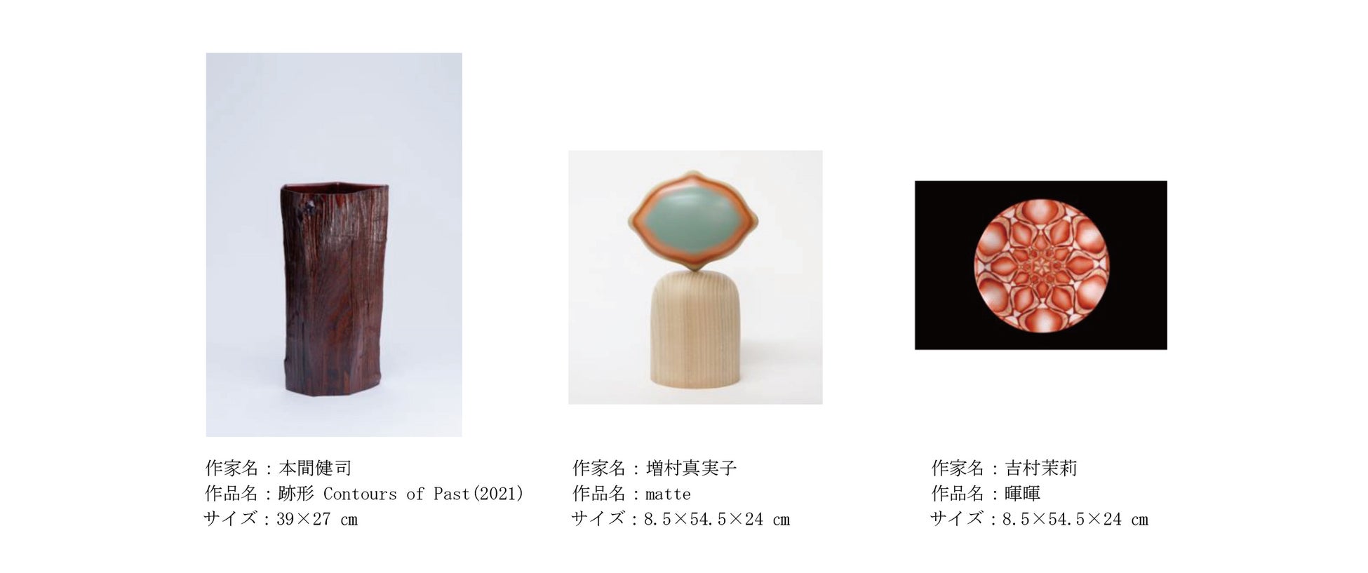 本間健司(漆芸)、 増村真実子(漆芸)、吉村茉莉 (陶芸)