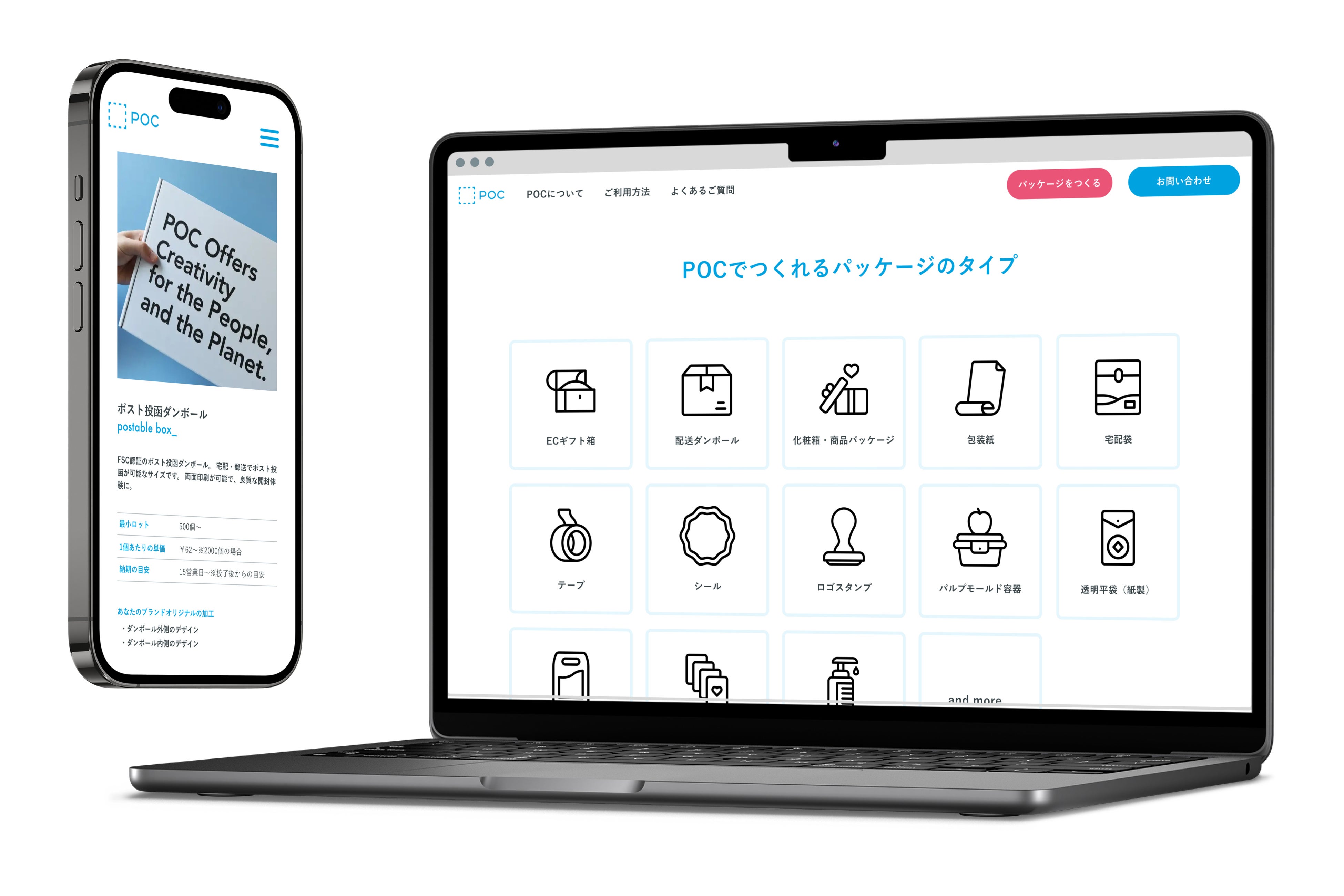 POC(ポック)は、大小問わず全てのブランドやショップがサステナブルでオリジナルなパッケージをつくれるプラットフォームです。 日本中の50を超えるサステナブルパッケージ製造に強い工場と提携しており、パッケージの構想、製造、納品までをワンストップでサポートします。