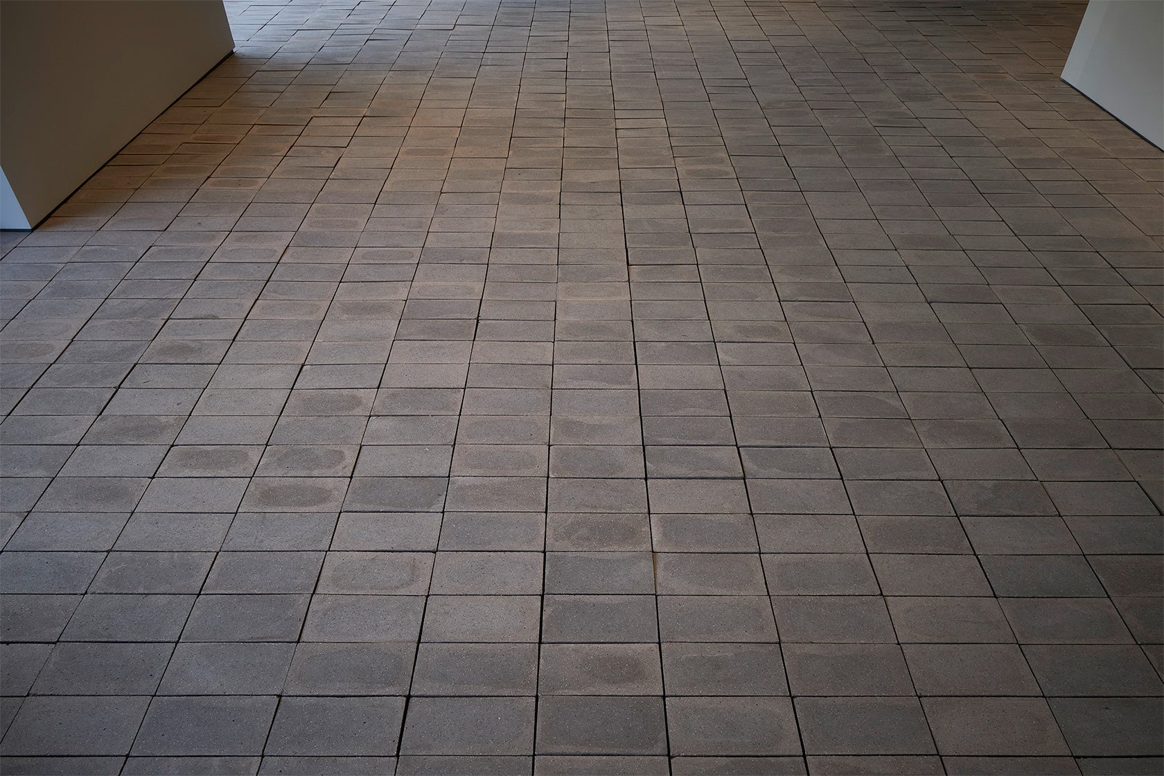 新青山ビルを改めて見ると、ロンドンのバービカン・センターの空気感に似ていると感じました。時を経た重厚感を生かしながら、いつからそこにあったのか分からないような時間的価値のある空間にしたいと考えました。素材や色使いはニュートラルにしながらも、質感のある不揃いのレンガで空間に個性をもたせました。一度焼いたレンガタイルをスライスして普段使わないレンガの内側の面を見せることで、ゆがみや素材の手触り感といった独特な表情をつくり出しています。ものや人が出入りしながら絶えず変化する「余地を残した空間」となるように意識しました。