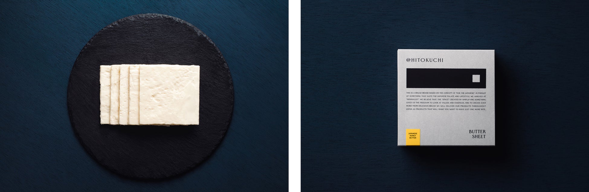 そこで従来の食パンから違いを感じてもらうためにも、日本人が好む白ごはんのような食パンを掘り下げて考える必要がありました。そして試行錯誤の末できたのが@HITOKUCHIの食パンです。さらにその食パンをより美味しく、楽しむために出来上がったものがバターシートです。