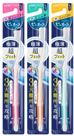 花王史上初2.5mmの極薄ヘッドと密着ウェーブカットによる「極薄超フィット」で、磨きにくい3大難所(奥歯の奥・ハグキのキワ・すき間)の歯垢を除去