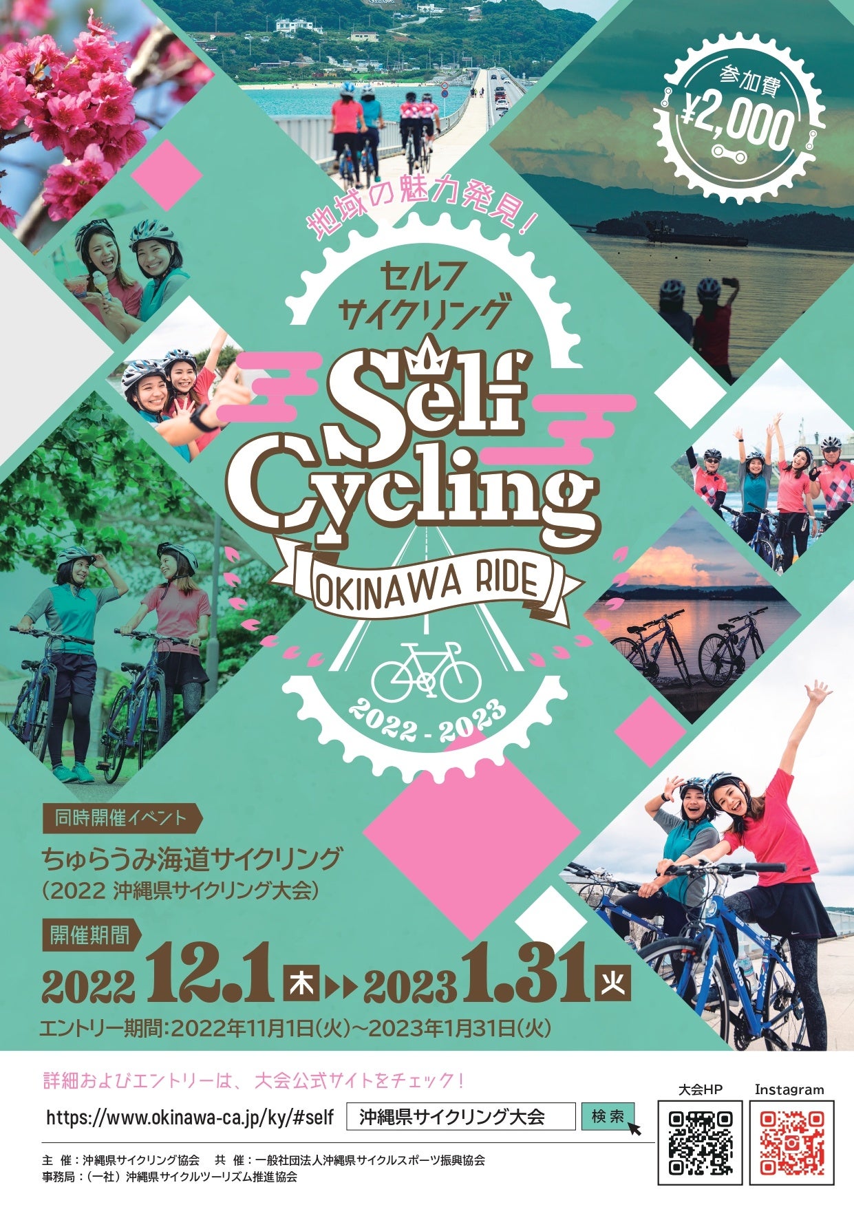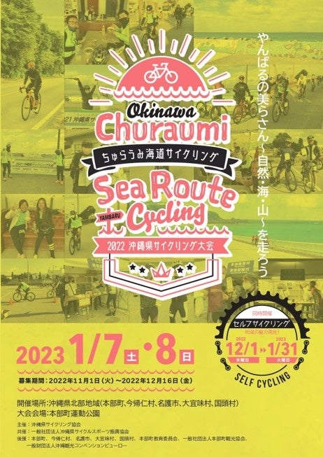 セルフサイクリングは、ちゅらうみ海道サイクリング(2022沖縄県サイクリング大会)同時開催のイベントです。1月7日・8日の大会に都合が合わず参加できない方、家族や友達と小グループで楽しみたい方、自分のペースで楽しみたい方におすすめです。