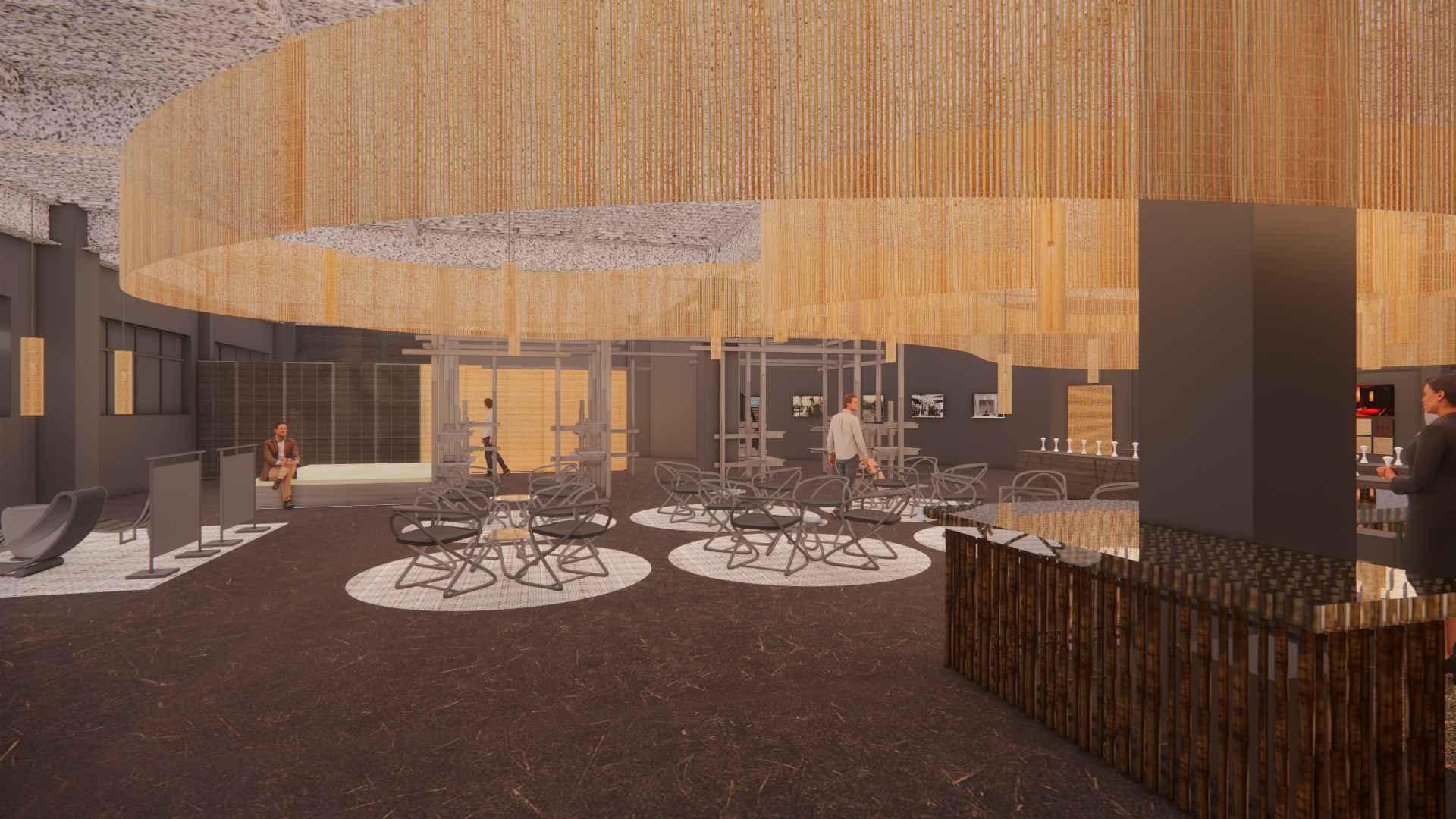 当ショールームは、「サスティナブルな竹すだれ・籐素材を使った次世代のホテル空間」をコンセプトに、国内外のインテリアデザイナーへ提案する施設として、隈研吾建築都市設計事務所が内装を設計しました。10数年前より隈研吾氏が設計する物件に使用されてきた弊社のすだれは、エースホテル京都や星野リゾート別府などで納入され、近年は海外へも展開しています。すだれの伸縮性や透過性など素材特性を検証するラボを併設し、その画像や動画を2023年2月にリニューアル予定の英語WEBサイトで伝える計画です。さらに竹と同様サスティナブルな「籐」素材で、ホテル空間用家具として隈研吾氏がデザインした新製品を発表致します。