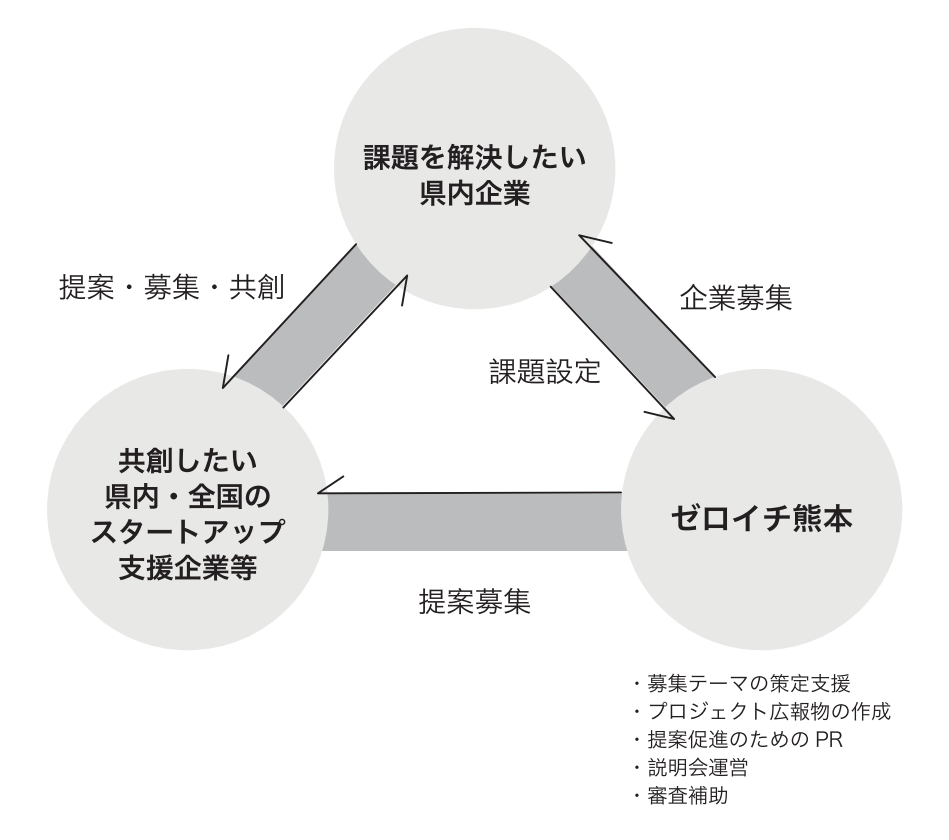 オープンイノベーションは大都市の大手企業が推進していることが多く、まだまだ地方都市には広がっていない現状があると考えています。「ゼロイチ熊本」は、県内の中核企業に絞って実施するサービスとすることで、熊本に共創やイノベーション創出を増やすことを目指しています。