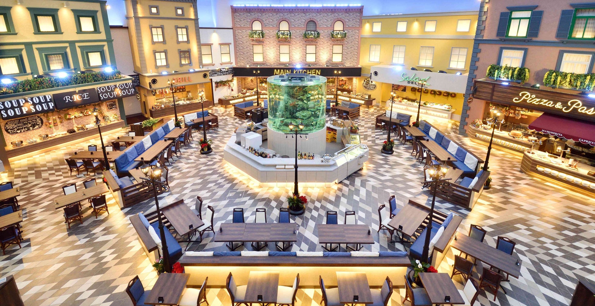 ※写真は「別府温泉 杉乃井ホテル」のレストラン「ワールドダイニング シーダパレス」。施設内の「バイキングレストラン シーズ」でも、うまみだけメニューは提供しています。