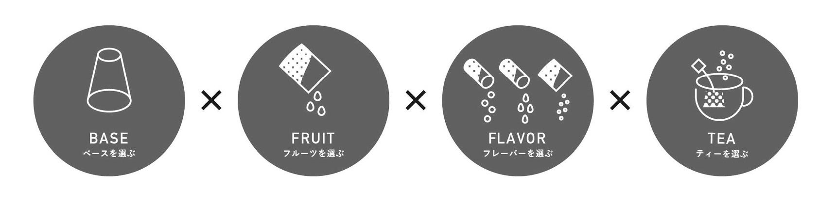 メインは、ベース×フルーツ×フレーバー×フレーバーティの4つの掛け合わせを自分でセレクトできるセットです。選ぶ時から食べ終わるまでのワクワクする体験を提供します。