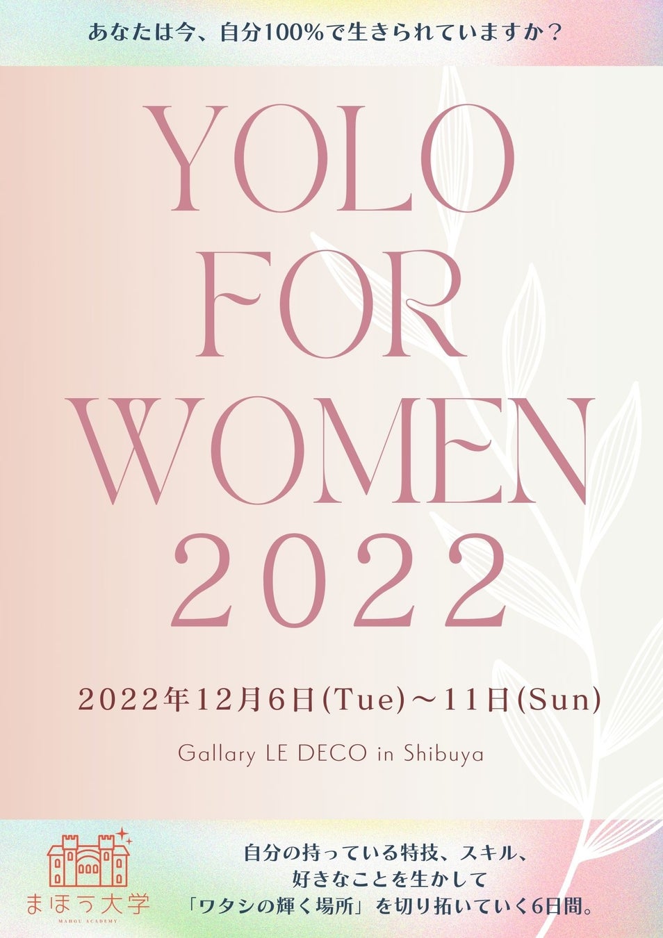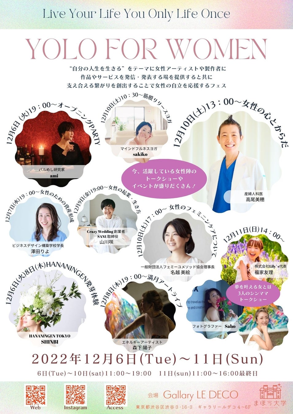 株式会社トーチは、2022年12月6日(火)から11日(日)の6日間、渋谷のギャラリールデコにおいて、女性の自立を応援する総合イベント「YOLO FOR WOMEN」を開催、運営します。