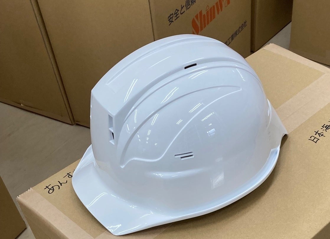 そこで被災されヘルメットに困っている事業者の方に工事、土木作業用ヘルメットを寄付することにしました。