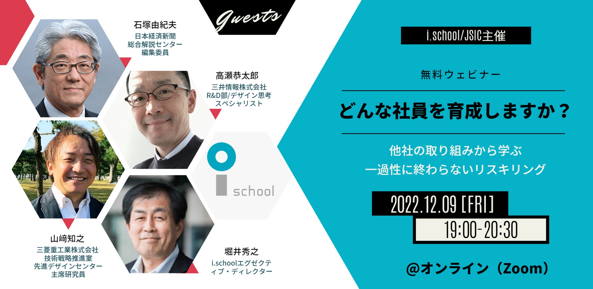 【i.school/JSIC】2022年12月9日(金)シンポジウム開催「どんな社員を育成しますか? 〜他社の取り組みから学ぶ一過性に終わらないリスキリング 〜」