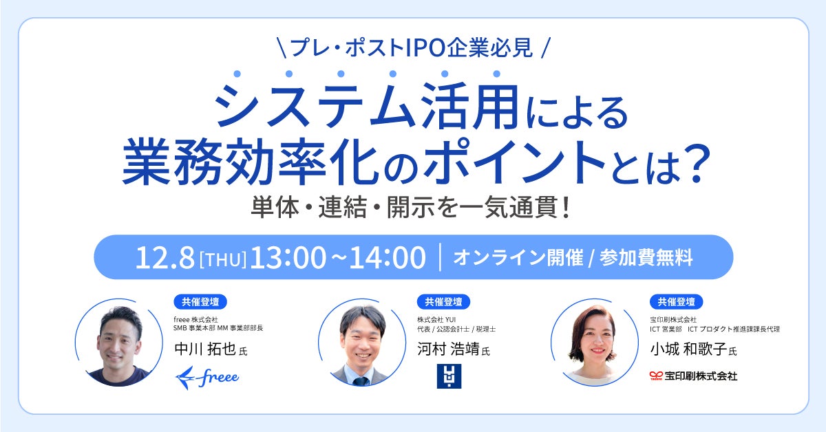 イベント名:〜プレ・ポストIPO企業必見〜 単体・連結・開示を一気通貫!システム活用による業務効率化のポイントとは?