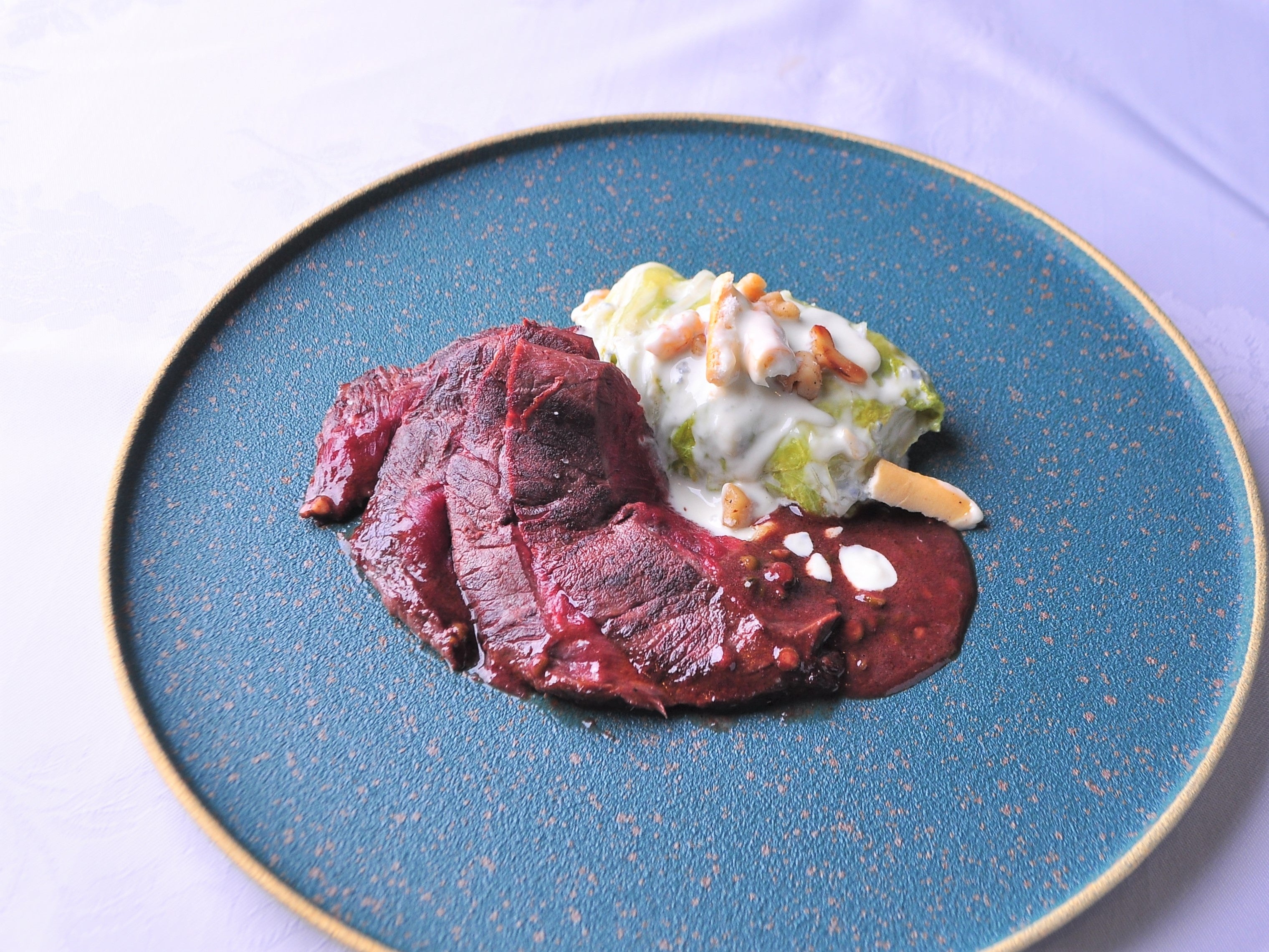 ・白馬の隣村・美麻の鹿のローストグリンペッパーソース
