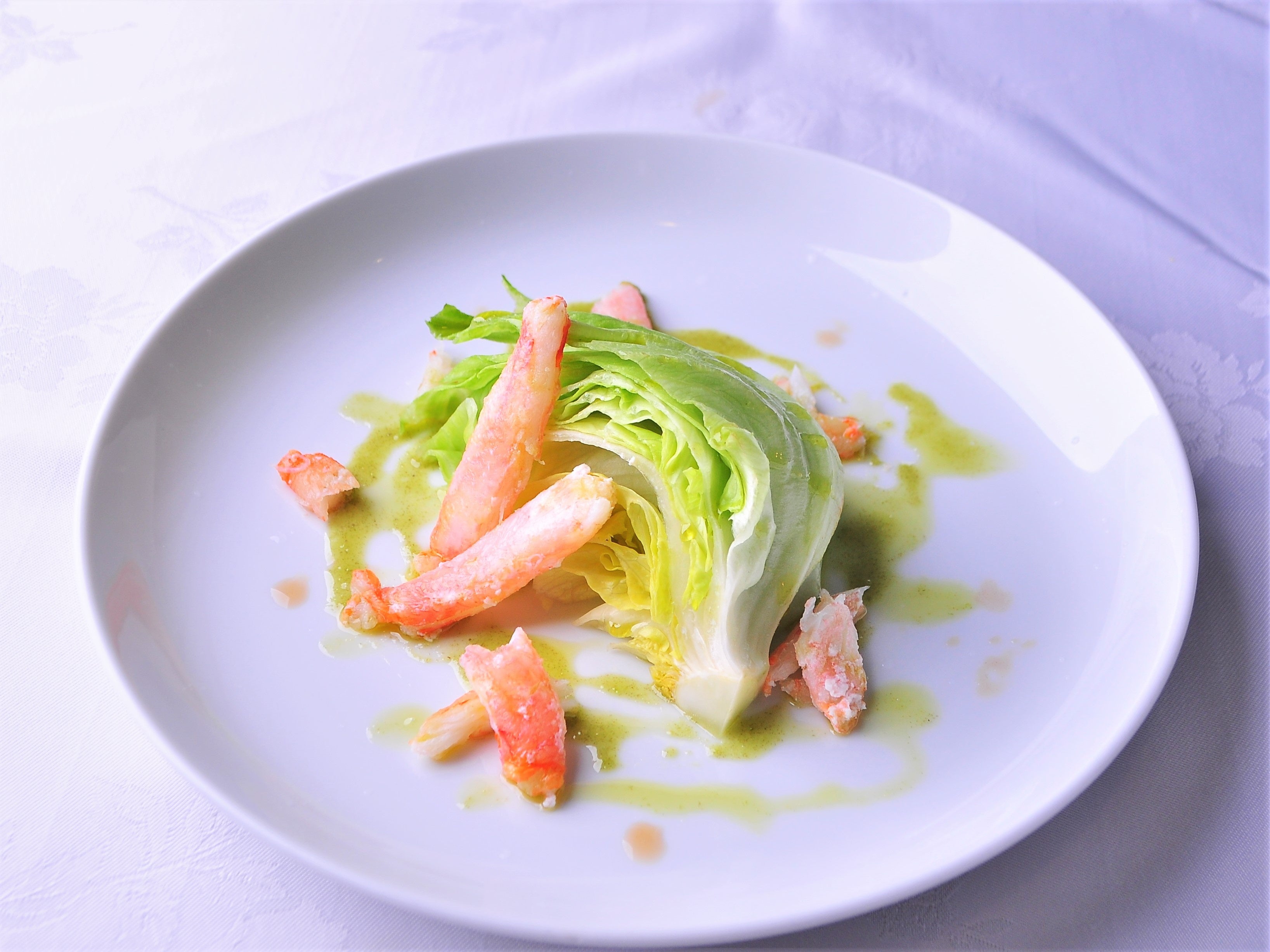 白馬の雪中白菜の生ハム巻き青カビチーズクリームと信州