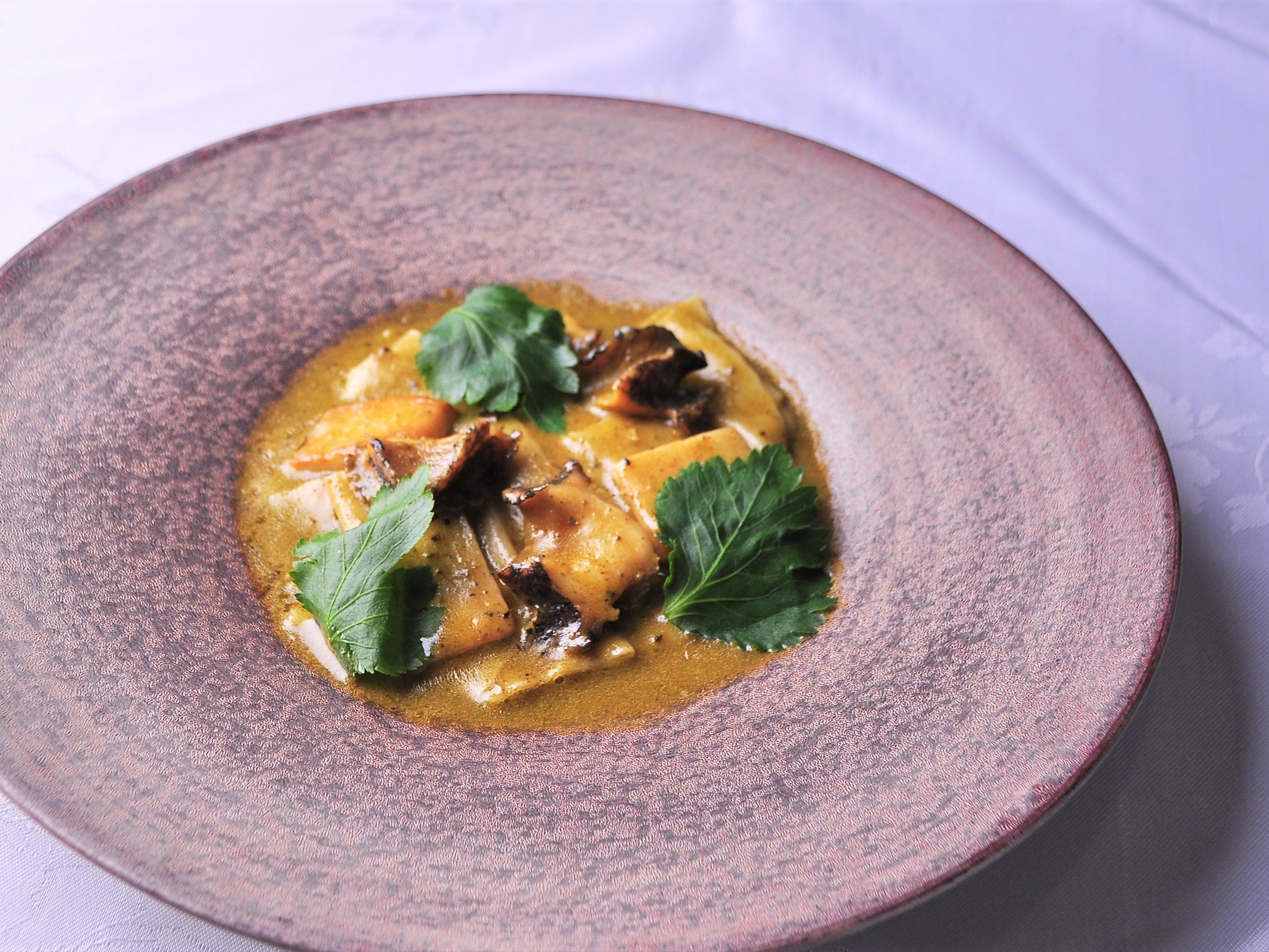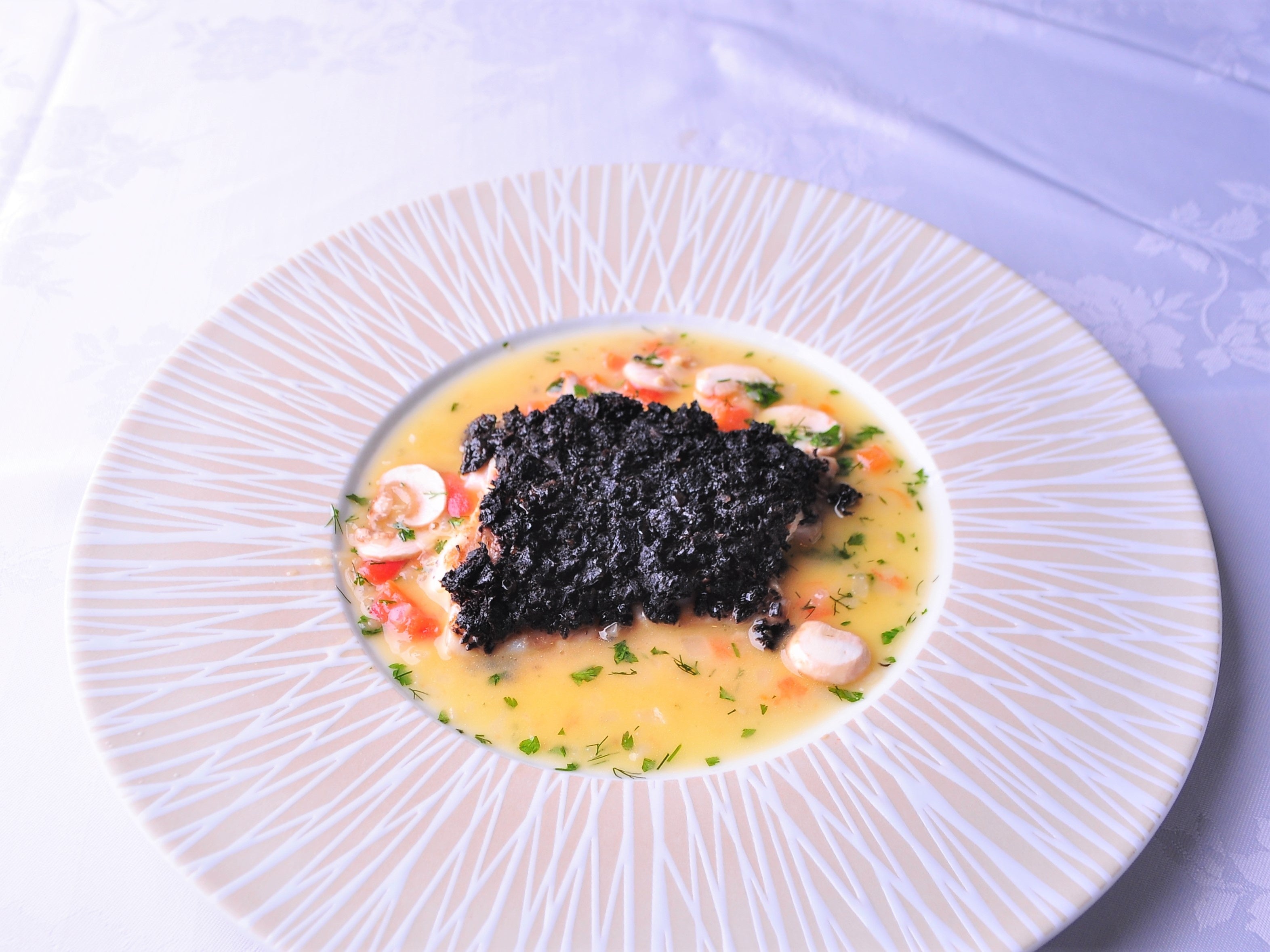 ・姫川の流れ出る糸魚川港の魚と白馬の香茸のデュクセル