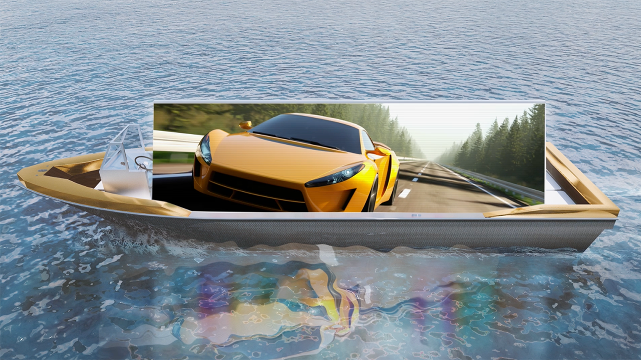 今回新たに提供する「LEDアドクルーズ」は、川や海を運航する船から広告を流す日本初のLEDビジョン搭載広告船です。船には約2m×8mの大型LEDビジョン2枚とアンプスピーカーを搭載し、鮮明な映像とパワフルな高音質サウンドにより、圧倒的なインパクトを残す広告を届けることができます。また、従来のLEDアドトラックでは、道路交通法により走行中に動画広告を流すことは禁止されておりますが、「LEDアドクルーズ」は運航中に動画広告を無制限で流すことができ、広告媒体の中でも自由度が高く非常に効果的な媒体であると考えます。