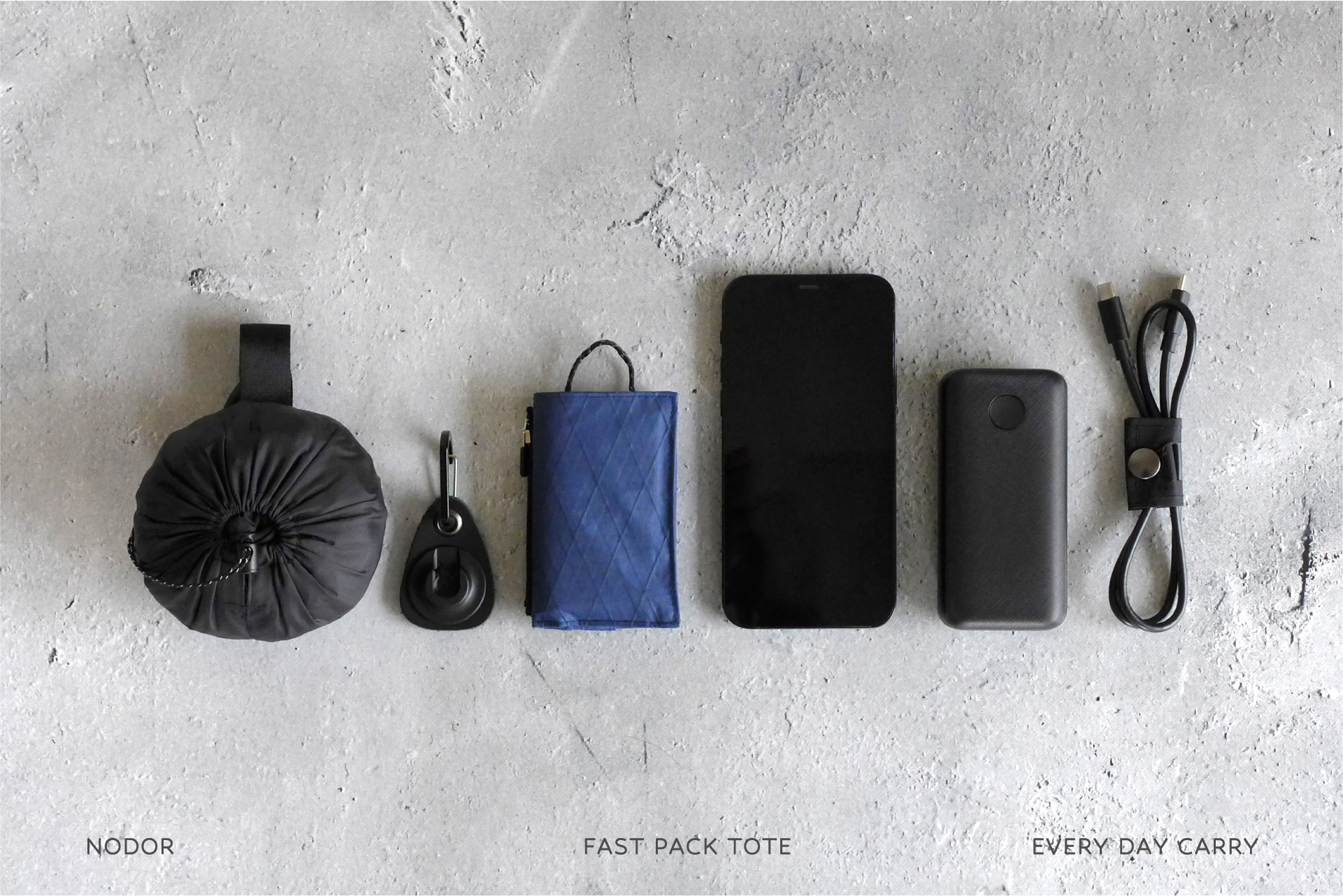 〈FAST PACK TOTE〉は、エコバッグとトートバッグの特徴を併せ持つ「進化系パッカブルトートバッグ」です。ハンモック構造をヒントに、そしてアウトドアの素材や機能性も盛り込み企画開発しました。
