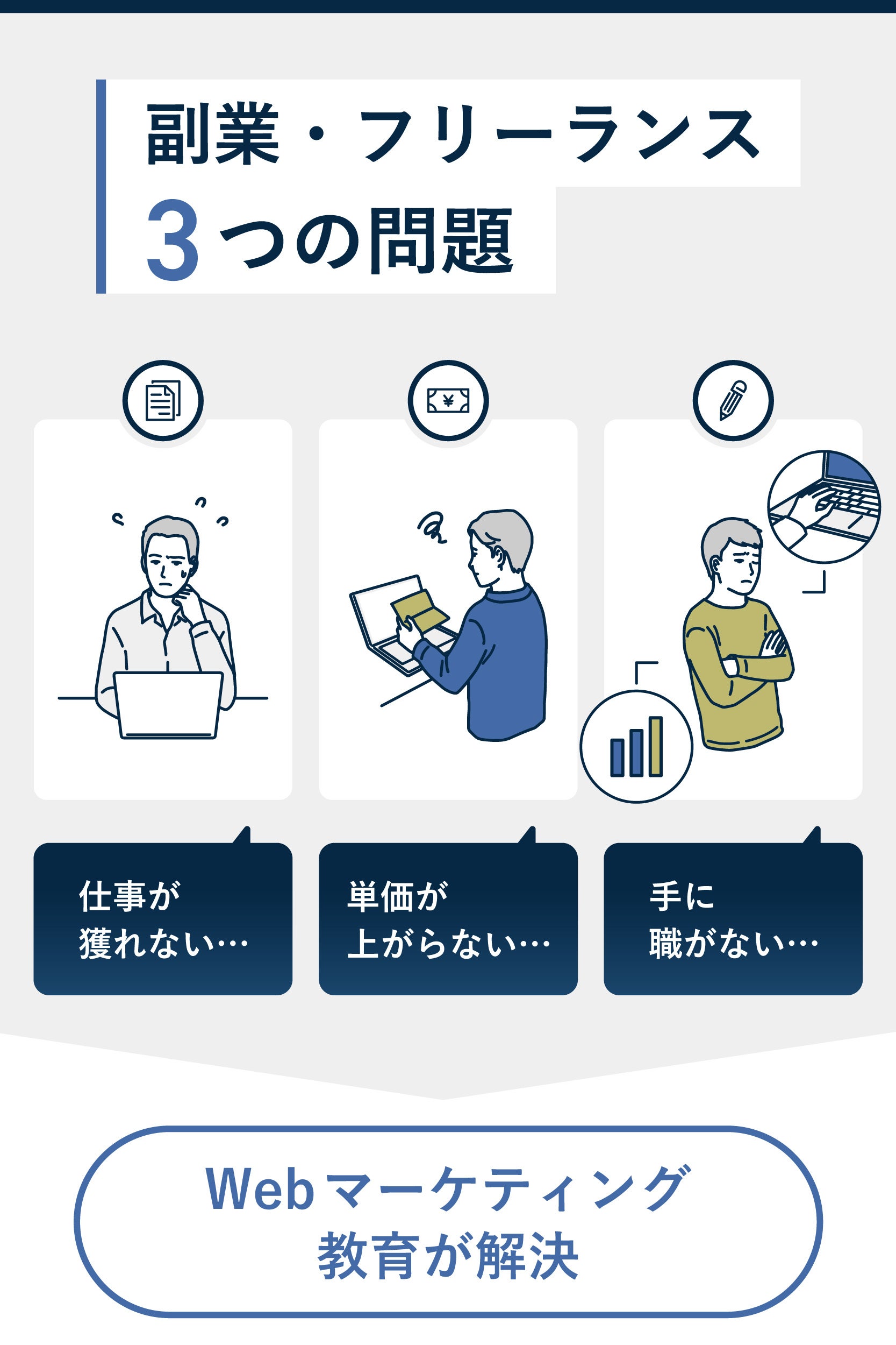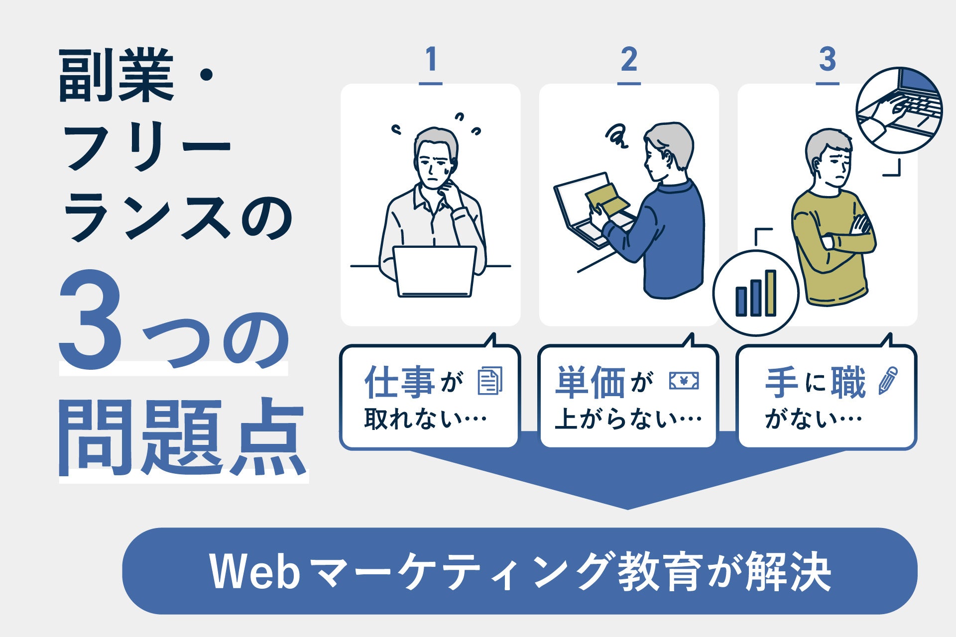 今後増えていく、副業・フリーランスの「収入の悩み」を、Webマーケティング教育で解決します。