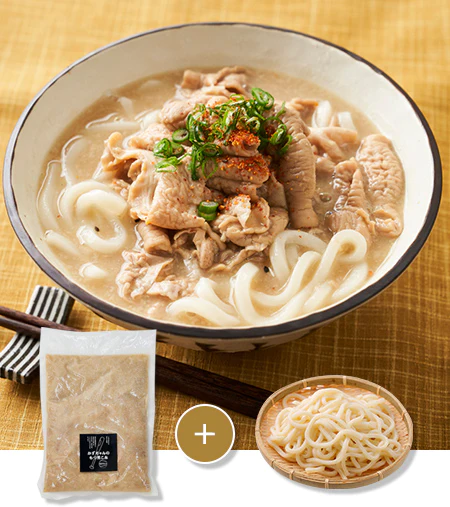 かずちゃんのもつ煮こみにうどんを入れただけの、手間いらず超簡単もつ煮うどんです。難しい調理なしで、あっという間に完成します。