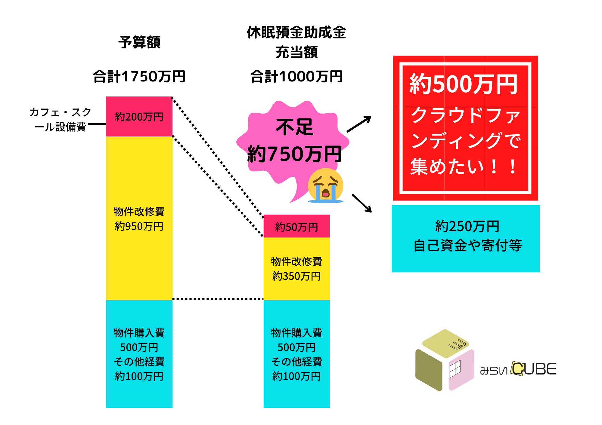 支援金使用目的:物件改修費、カフェ・スクールの設備費等の資金、クラウドファンディング手数料等