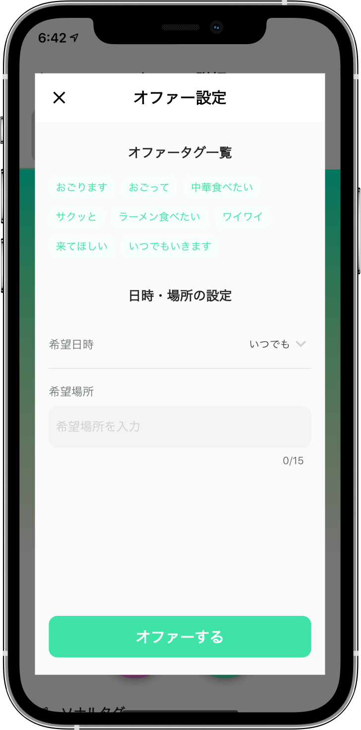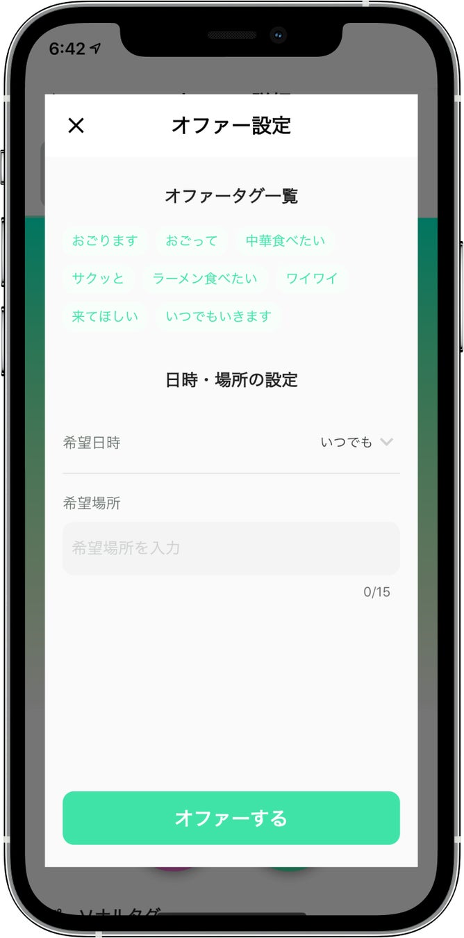 見つけたら「希望日時」と「希望場所」を記載してオファーするだけです。