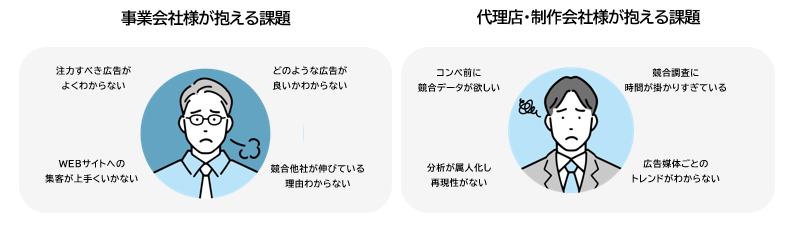 今まで深く調べることができなかった、また調査に時間をかけていた【広告】に焦点を充てることで低価格でのご提供を実現しています。