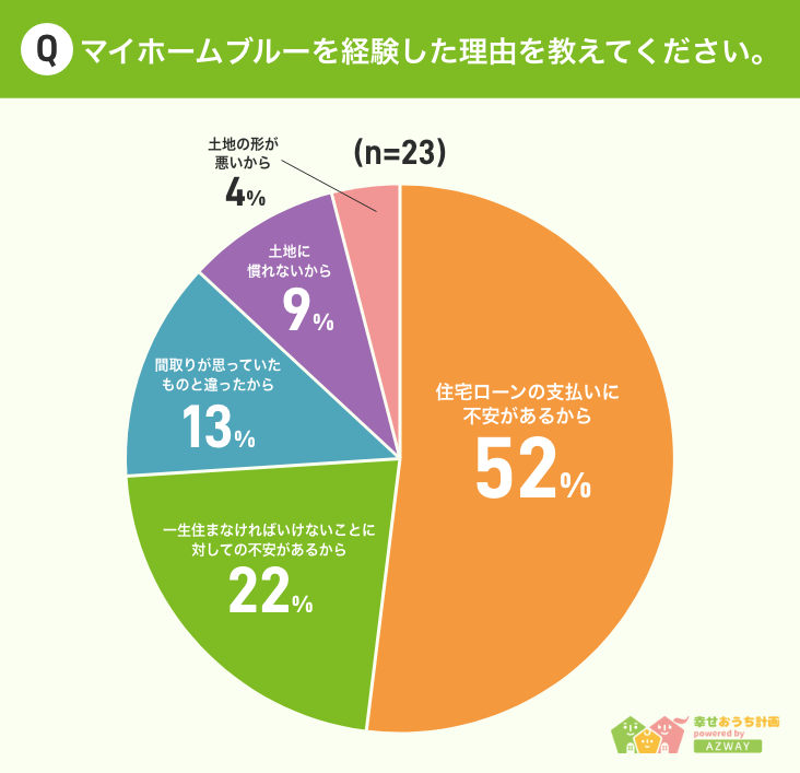 ■52%が「住宅ローンの支払いに不安があるから」、22%が「一生住まなければいけないことに対しての不安があるから」と回答。