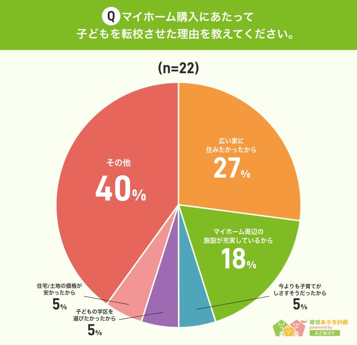 マイホーム購入にあたって子どもを転校させた方の中では、広い家や周辺施設など、土地そのものに魅力を感じて転校させる方が多いようです。