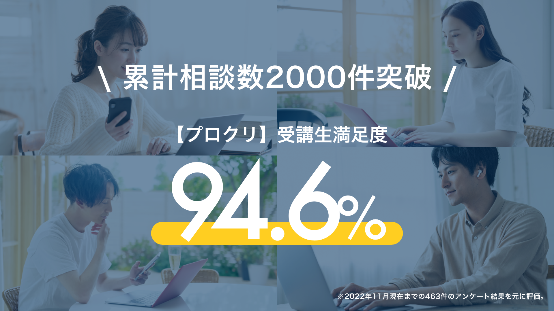 開始から10ヶ月で累計相談数が2000件突破した、動画制作スキルのコーチングスクール「プロクリ」サービス満足度94.6%に!