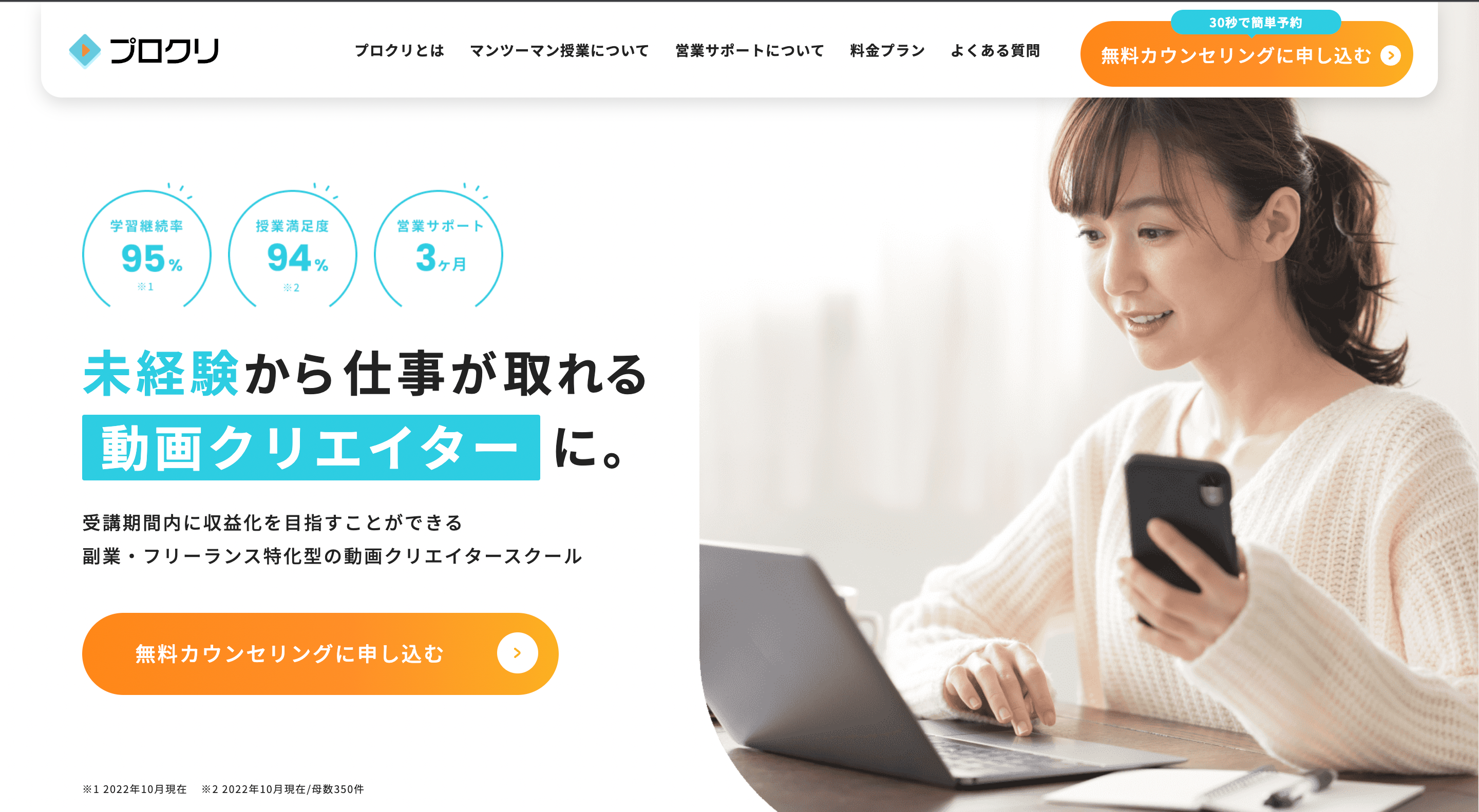 この度、動画制作スキルのコーチングスクール「プロクリ」(運営会社 株式会社mirubuzz)はサービス開始から10ヶ月で累計相談数2000件突破し、現時点でのサービス満足度が94.6%を記録したことをここにお知らせ致します。