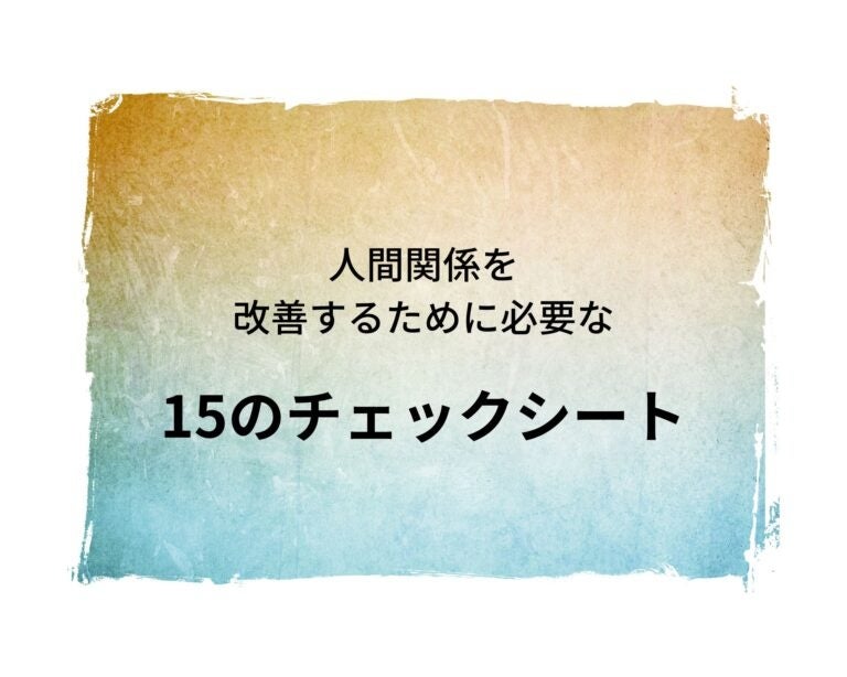 周囲の過去に人間関係に悩んできた人や、現在進行形で人間関係に悩みながらも奮闘している人たちのため、人間関係に悩む人の特徴を分析したチェックシートを作り、これを一つずつ解決していくことで悩める人間関係に終止符を打てるようにしました。