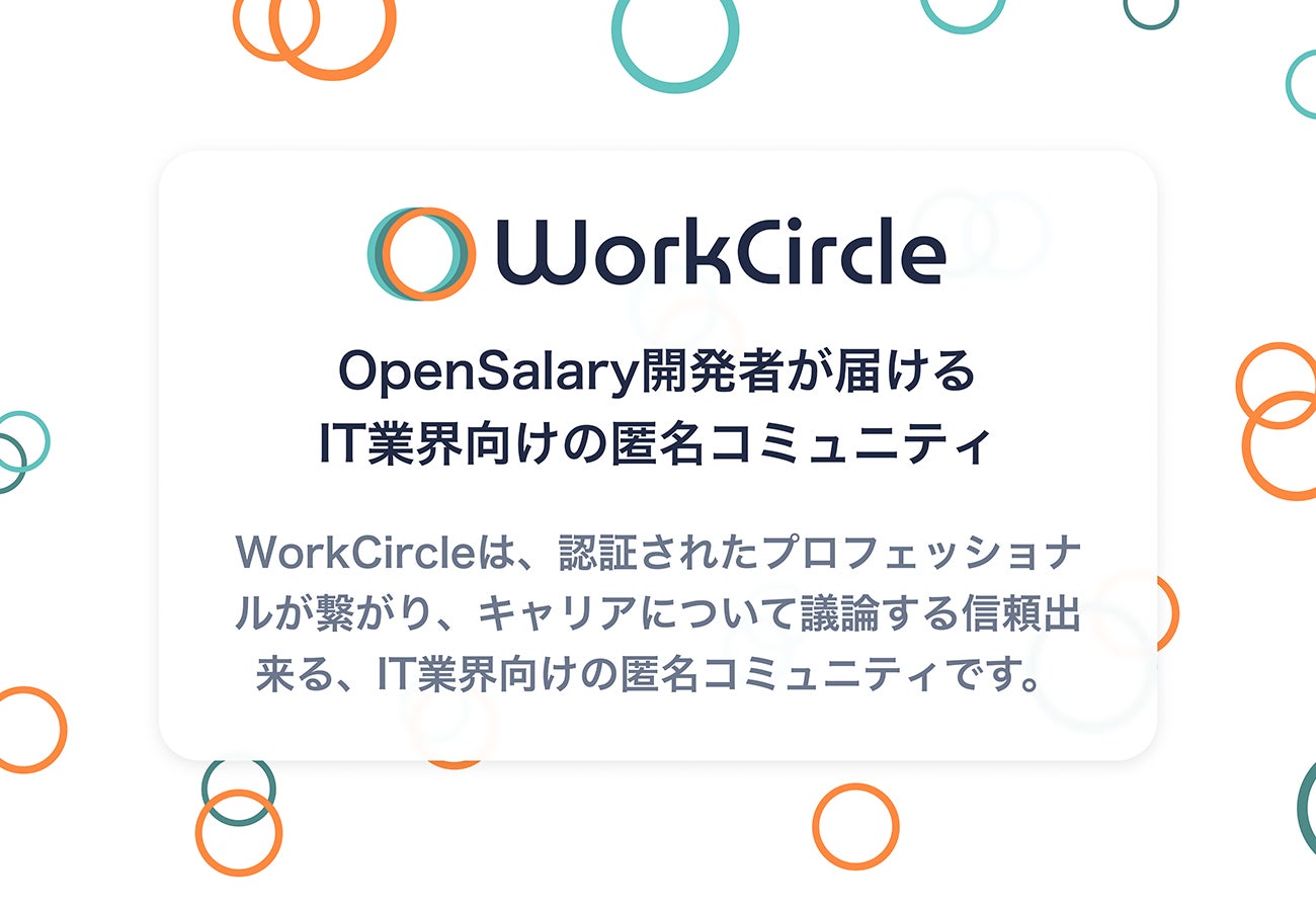 WorkCircleは「IT業界で働いている」という共通点を持った人が繋がり、自由に本音で語れる匿名コミュニティです。