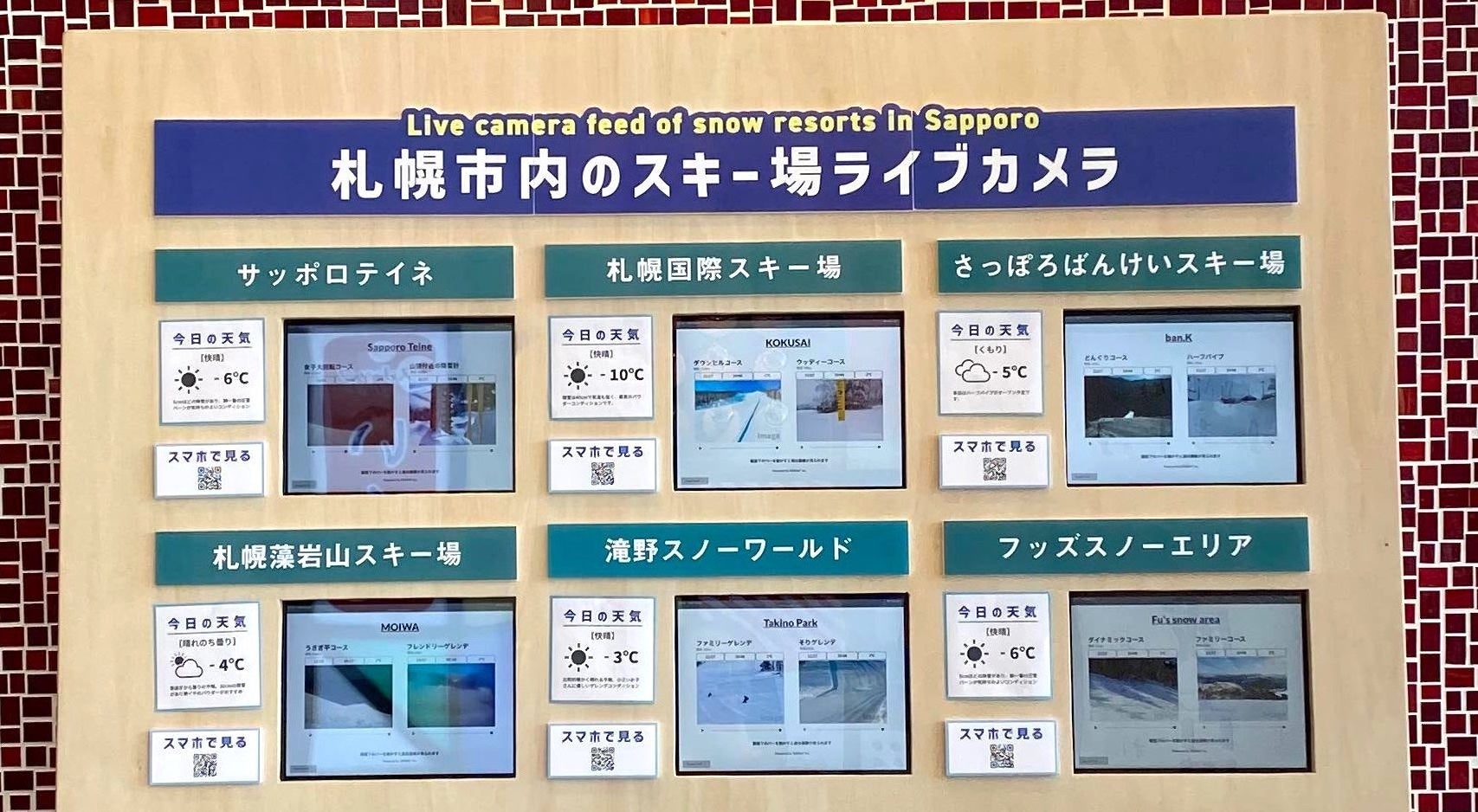 札幌市にある6スキー場のコンディションが、館内やスマホで確認できます