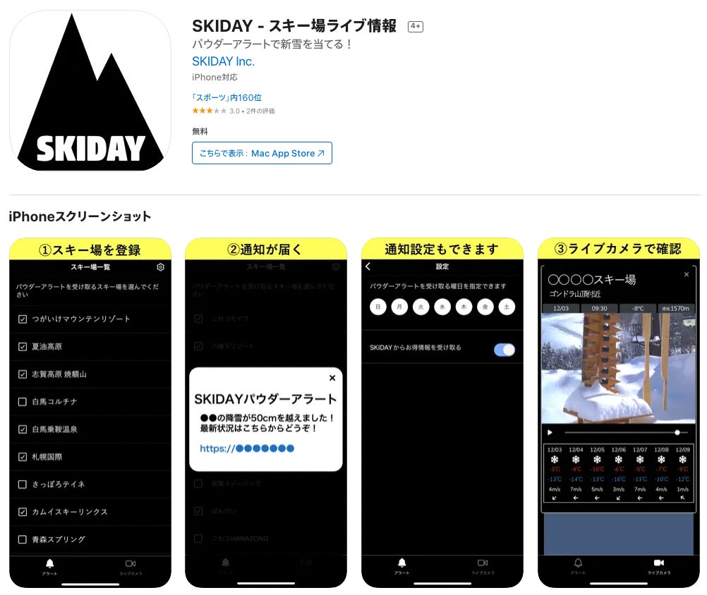 - “最高の日”を自動で教えてくれる専用アプリで「パウダーアラート」をキャッチ