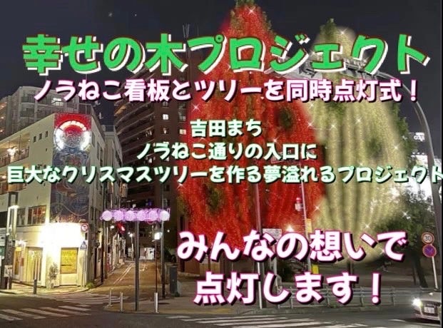 一般社団法人吉田町名店街会(神奈川県横浜市中区吉田町)は、コロナ禍を経験して結束を高めた商店街活性化のため、飲食店と来てくださるお客様に明るい光を届けるべく「吉田まちイルミネーション~幸せの木プロジェクト~」を立ち上げ、きたる11月22日(火)に福富町西公園(横浜市中区福富町2)にて、2本の大木と「ノラねこ通り」のネオン看板の点灯式を行います。