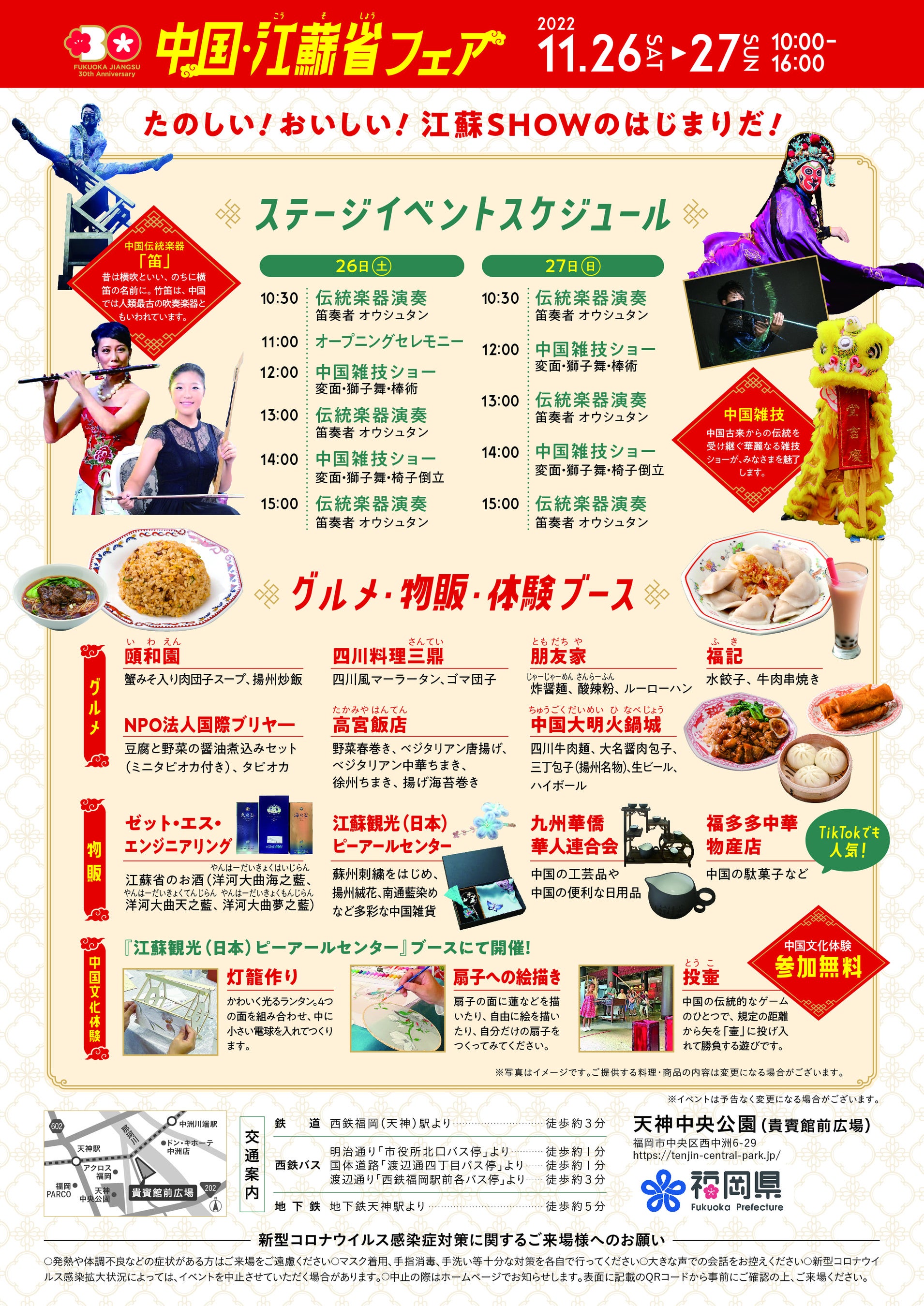 福岡県・江蘇省友好提携30周年記念イベント「中国・江蘇省フェア」を、天神中央公園にて11月26日、27日に開催!