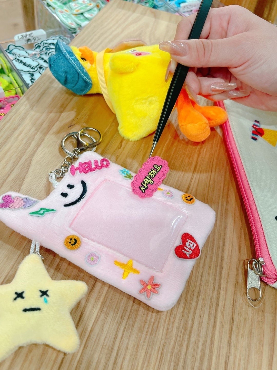 特に人気が高いのは、韓国の食べ物やお菓子をモチーフとしたワッペンです。また、“推し活”との相性も抜群で、韓国アイドルのファンのみならず、日本国内のアイドルやアーティスト、スポーツ好きな方も訪れています。メンバーカラーの写真ケースに名前のワッペンを合わせるなどして、世界でひとつだけの推し活グッズを作っています。