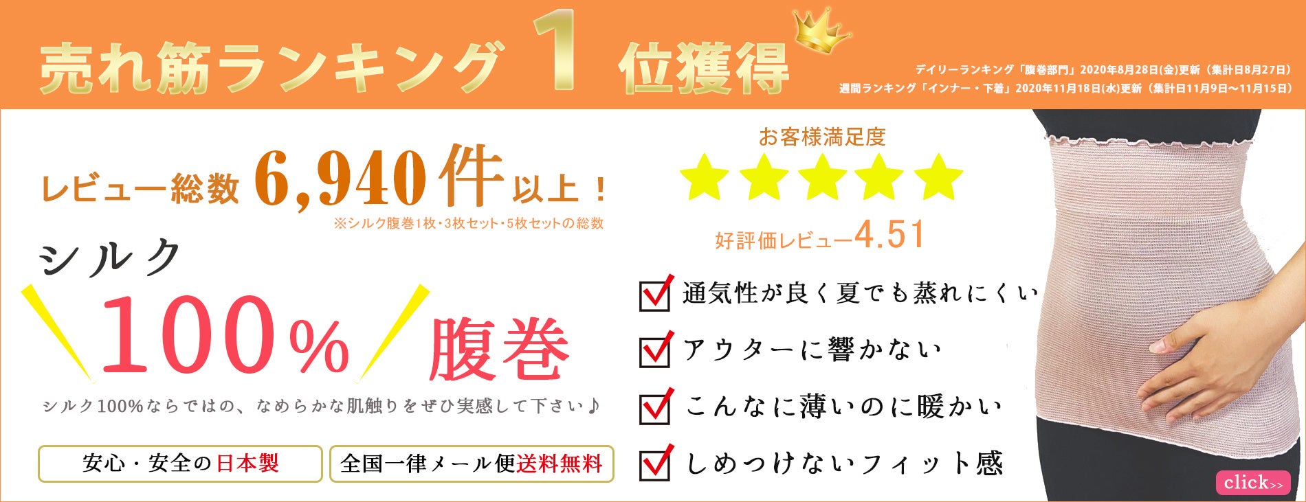 ・楽天腹巻き販売件数 一位の実績を生かした「暖かさと肌へのやさしさ」を実現。