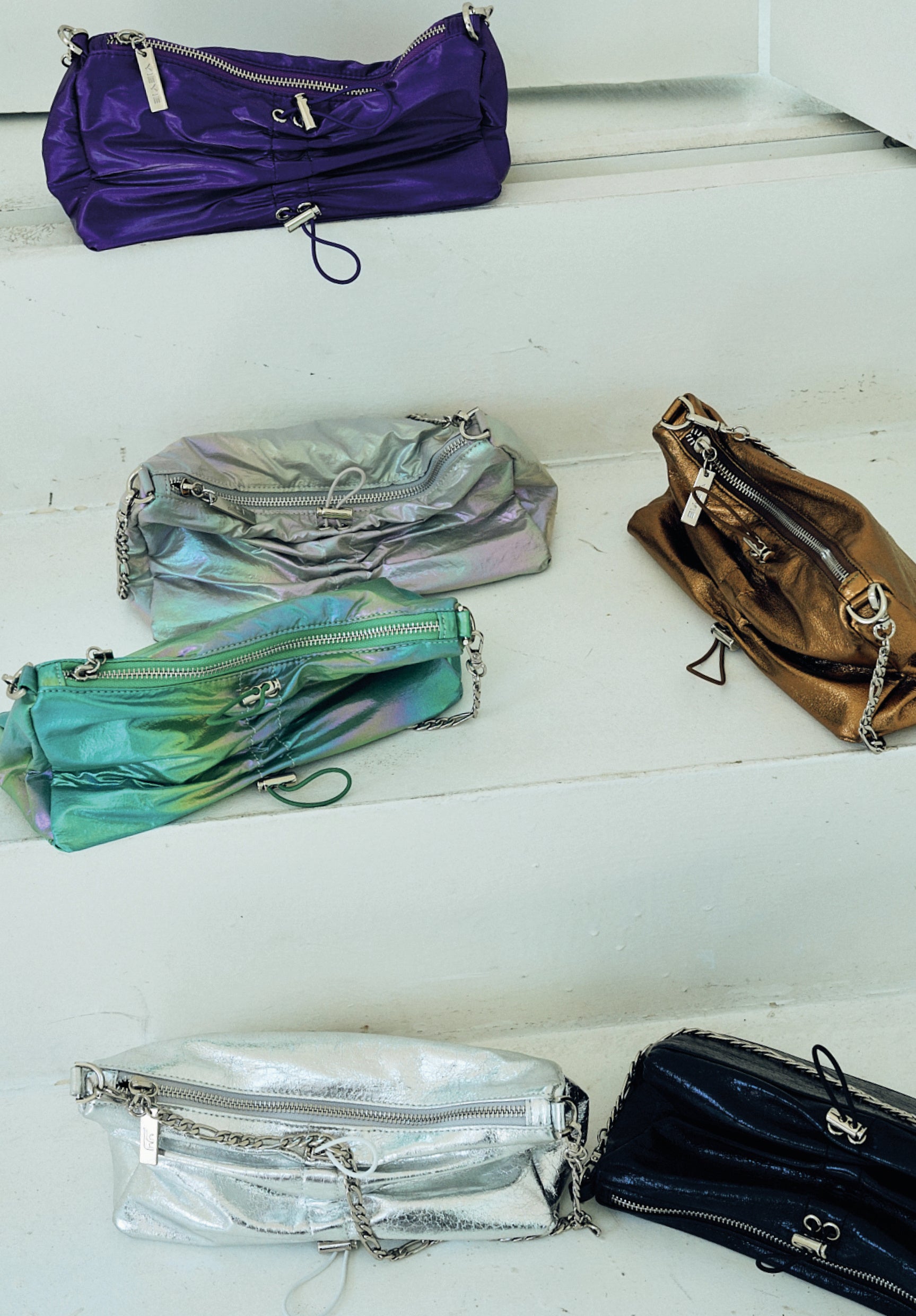 また、シューズと同様に人気を博すYIE YIEオリジナルバッグコレクションは、毎シーズン豊富なカラーバリエーションで展開されます。シンプルでコンパクトサイズながらも、ストラップの取り外しやギャザーの伸縮を調整することで、様々なスタイルに合わせたシルエットに変化させてお楽しみ頂けるオススメの逸品です。